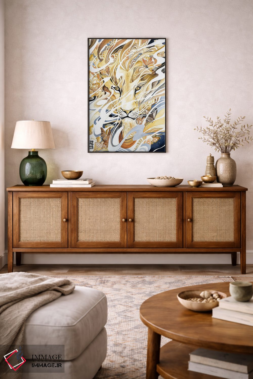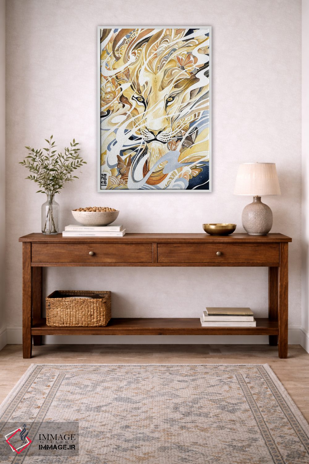 تابلو دکوراتیو شیر زرین صحرا اثر جونگکی - نمای پرسپکتیو محصول