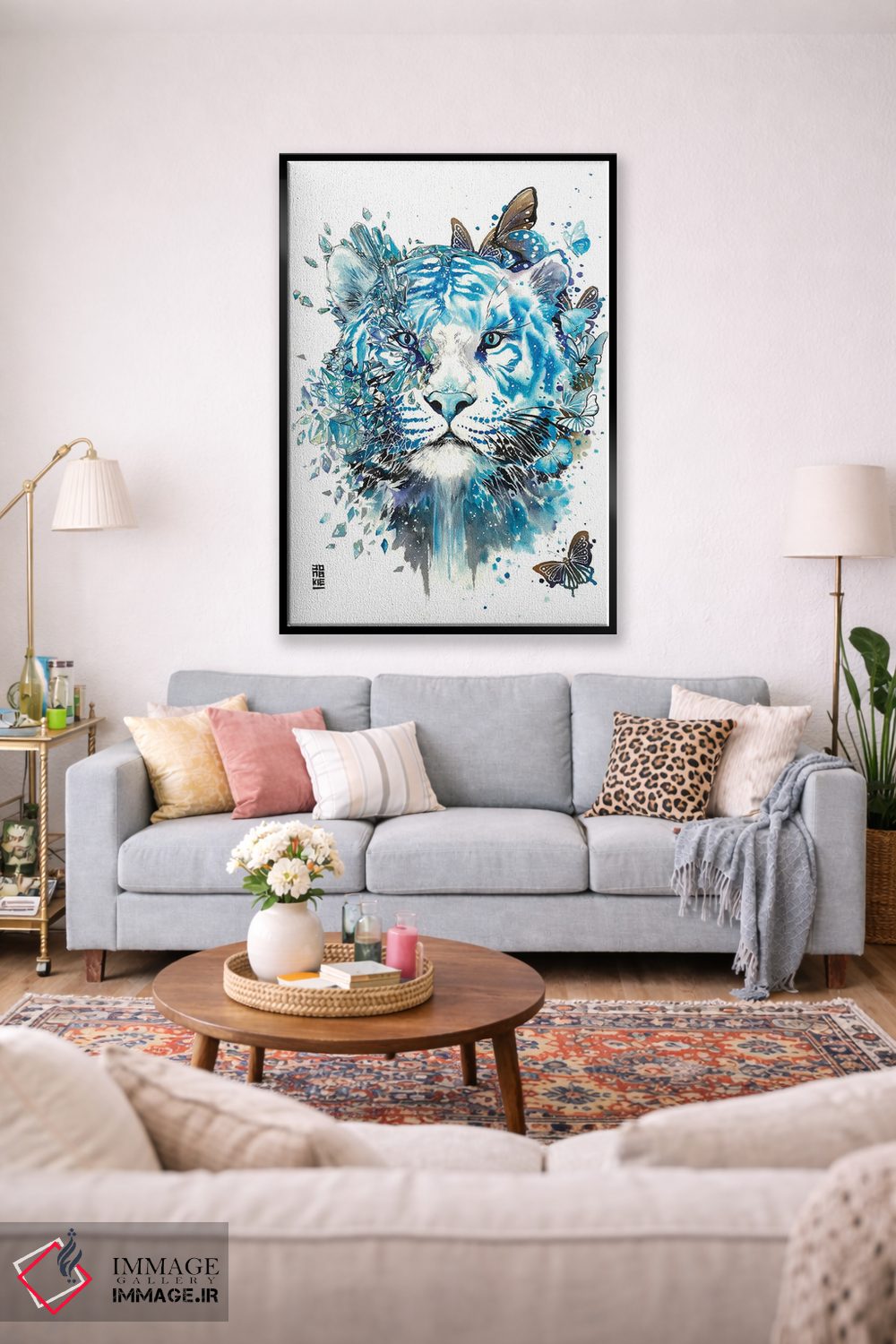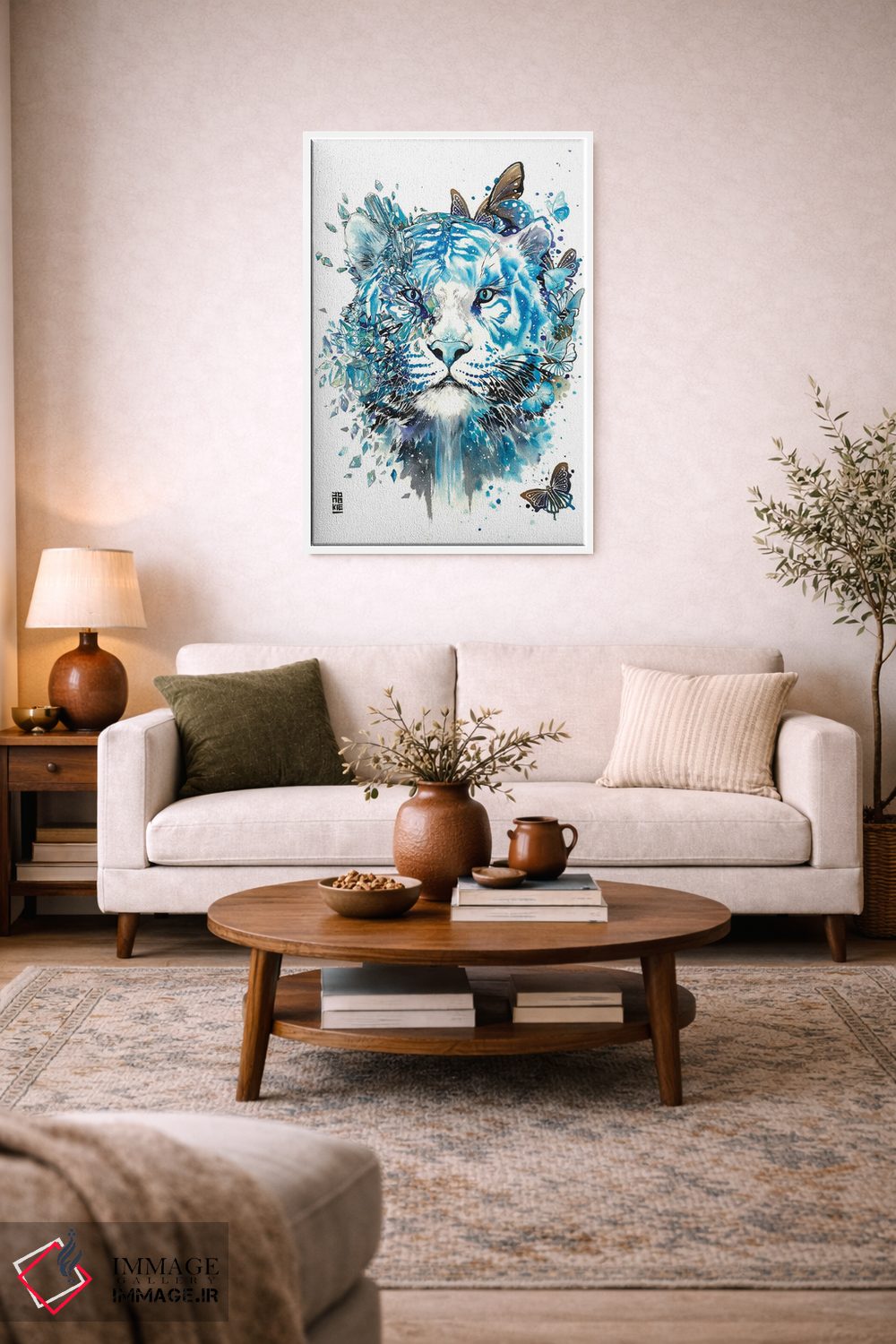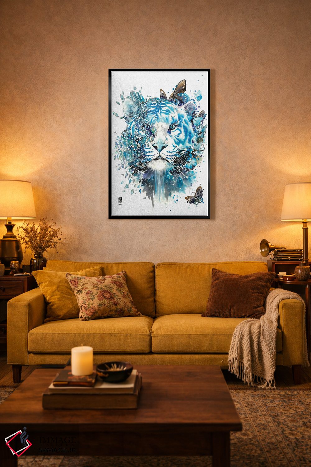 اگر میخواهید دیوار کمی سرزندگیِ محترمانه داشته باشد، «ببر سفید یخی» اثرِ «جونگکی» در کنار رنگهای خنثی، تضاد دلچسبی میسازد، برای دکورهای مدرن و مینیمال گزینهٔ مناسبیست. در کنار گیاهان و نور طبیعی، جذابتر هم میشود.