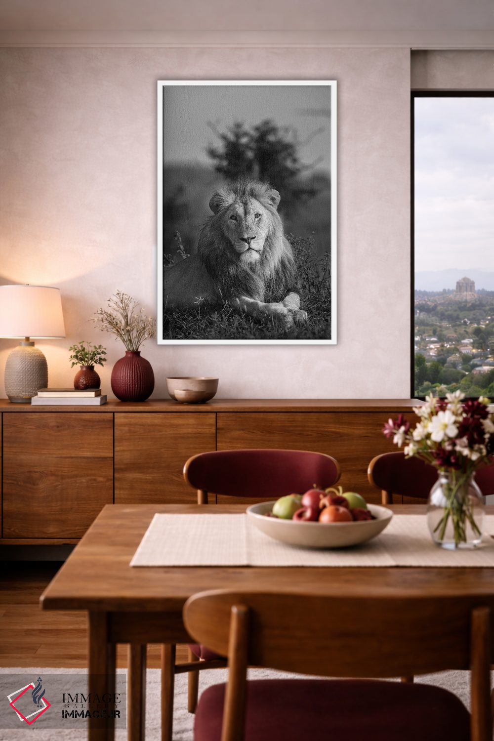 اگر به آثار حیوانات علاقه دارید، «شاه شیر» اثرِ «اندرز یورولف» فضا را صمیمیتر و دعوتکنندهتر نشان میدهد، برای اتاق کودک (بدون لحن کودکانه) گزینهٔ مناسبیست. با نورپردازی نقطهای، جذابتر هم میشود.