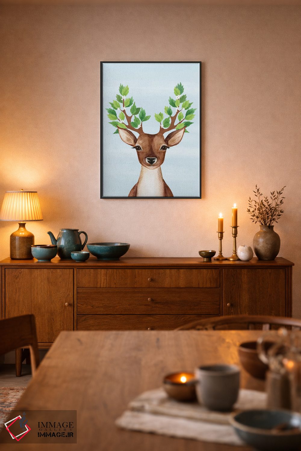 برای دیوارهای ساده، «یکی از جنس مهربانی I» اثرِ «جو تایلور» گرما و شخصیت به فضا اضافه میکند؛ برای فضاهای روستیک یا بوهو انتخابی خوشسلیقه است. هم فضا را گرم میکند، هم شلوغش نمیکند.