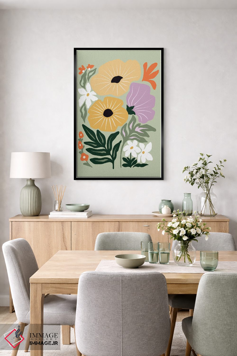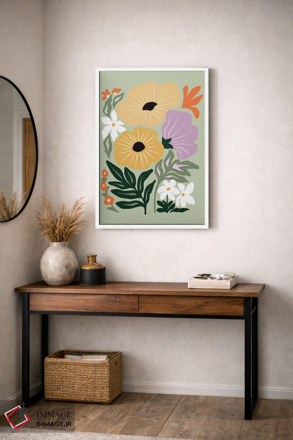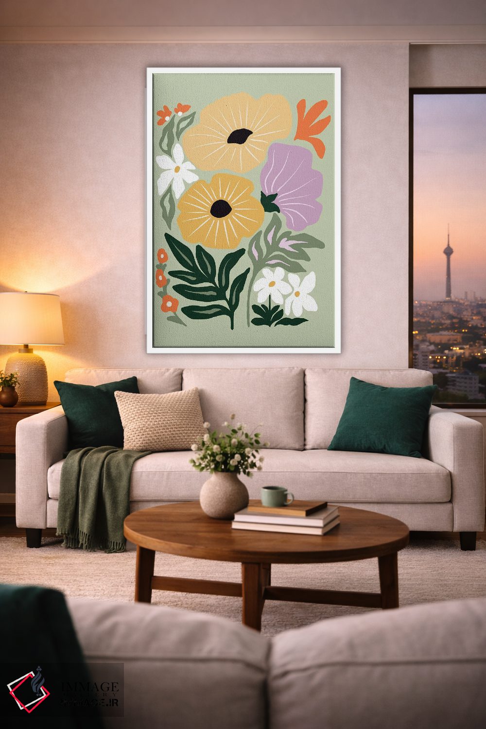 بوم گالری ایماژ طوری طراحی شده که اثر روی دیوار «پرداختشده» و حرفهای دیده شود—نه پرزرقوبرقِ بیپایه؛ بلکه دقیق و خوشپرداخت. با بافت ظریف کنواس، حس اثر هنری را در نگاه نزدیک نگه میدارد و همین «پرداخت» تفاوت را میسازد. قابپذیری باعث میشود بتواند اثر را نقطهٔ کانونی فضا کند و برای فضاهای رسمیتر هم انتخاب مطمئنی است. برای سفارش اندازه یا قاب متفاوت، تیم ایماژ راهنمایی میکند تا انتخاب نهایی هماهنگتر باشد؛ در فضاهای کاری، این نظم بصری خیلی به چشم میآید.