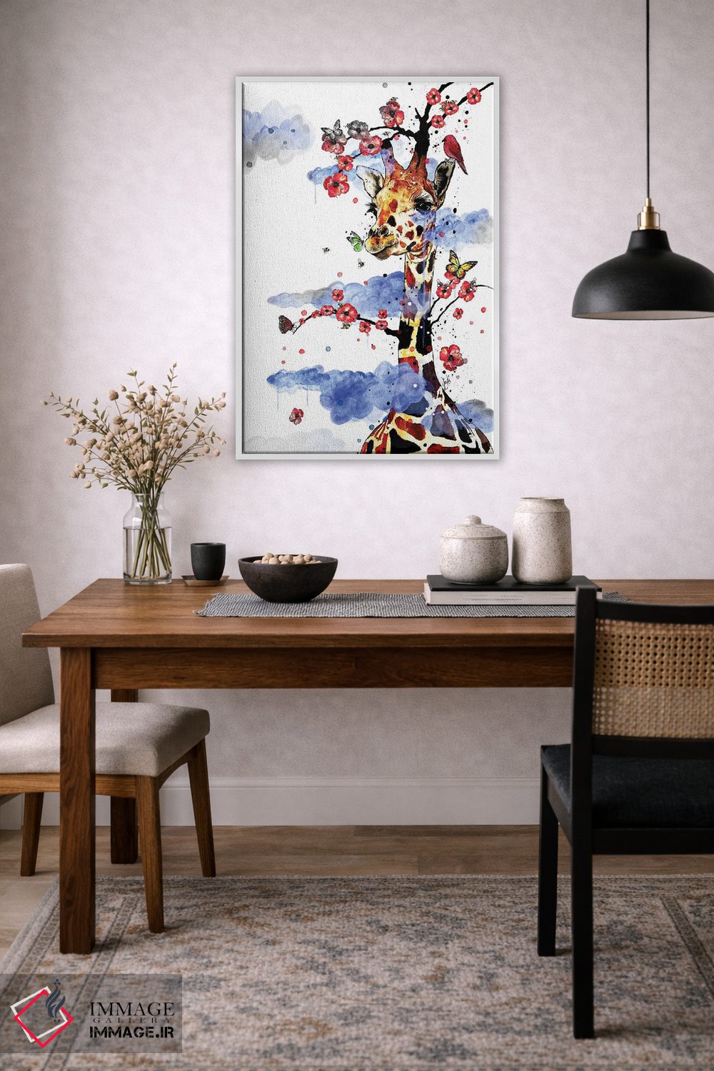 اگر به آثار حیوانات علاقه دارید، «زرافه آسمانی» اثرِ «جان سانتوس» فضا را صمیمیتر و دعوتکنندهتر نشان میدهد، برای خانههایی با چوب و پارچههای گرم گزینهٔ مناسبیست. اگر دنبال اثر دوستداشتنیِ «بیغلو» هستید، این یکی دقیق مینشیند.