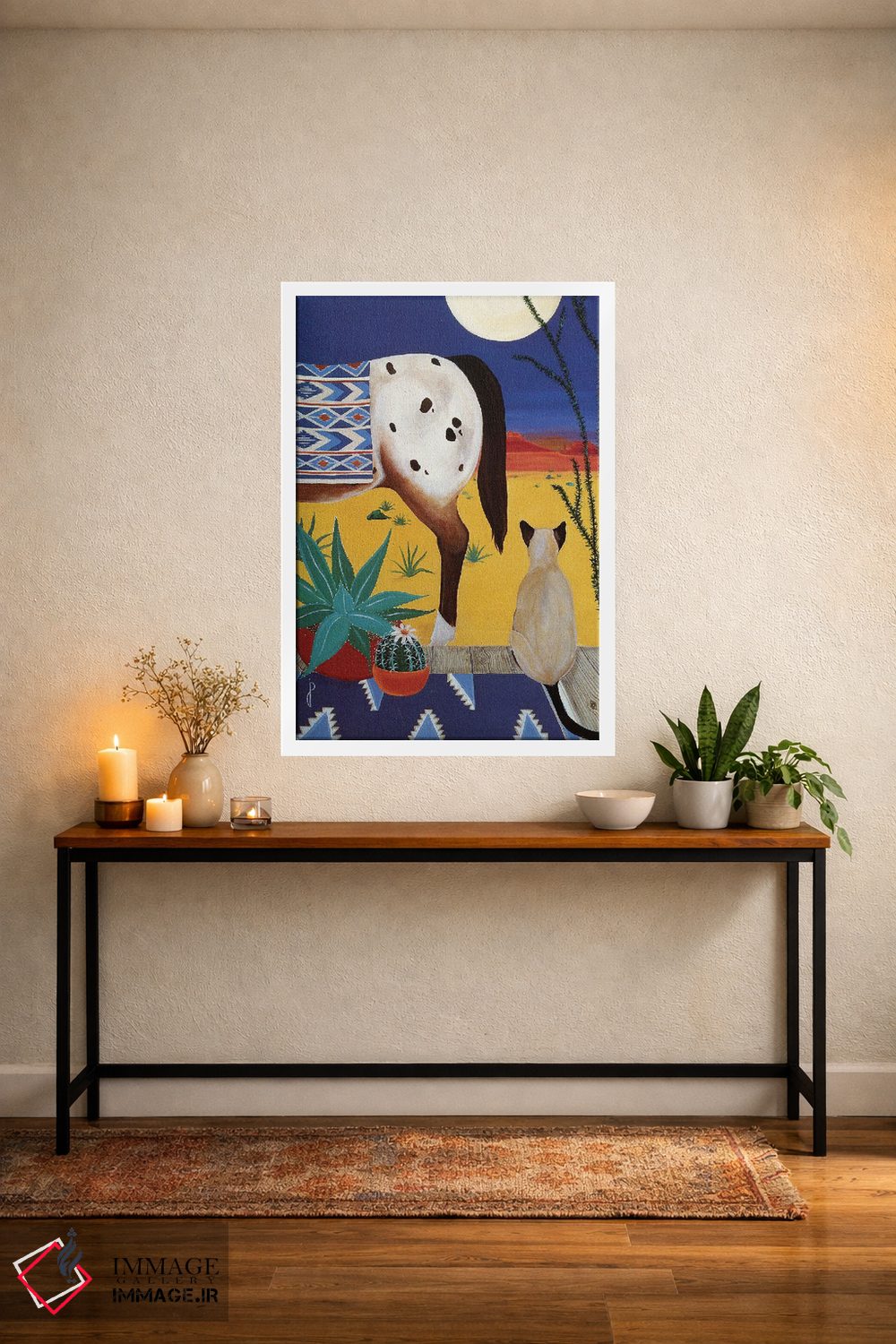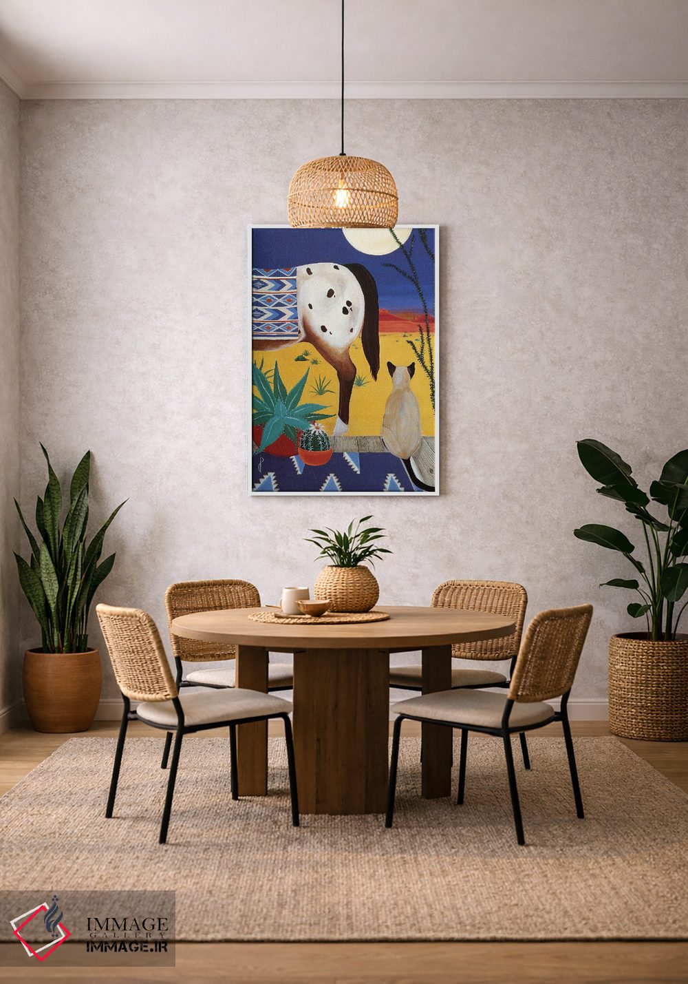 «اندیشهها زیر ماه صحرایی» اثرِ «یان پانیکو» میتواند برای دکورهای مینیمال، یک نقطهٔ توجه بسازد؛ برای دکورهای مدرن و مینیمال پیشنهاد میشود. هم فضا را گرم میکند، هم شلوغش نمیکند.