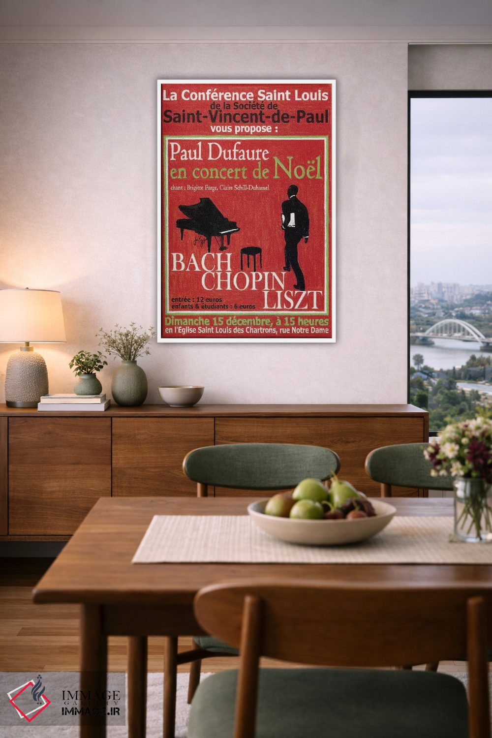 تابلو دکوراتیو پوستر قدیمی کنسرت نوئل پل دوفور اثر ژان-پی یر گو - نمای روبه‌رو روی دیوار