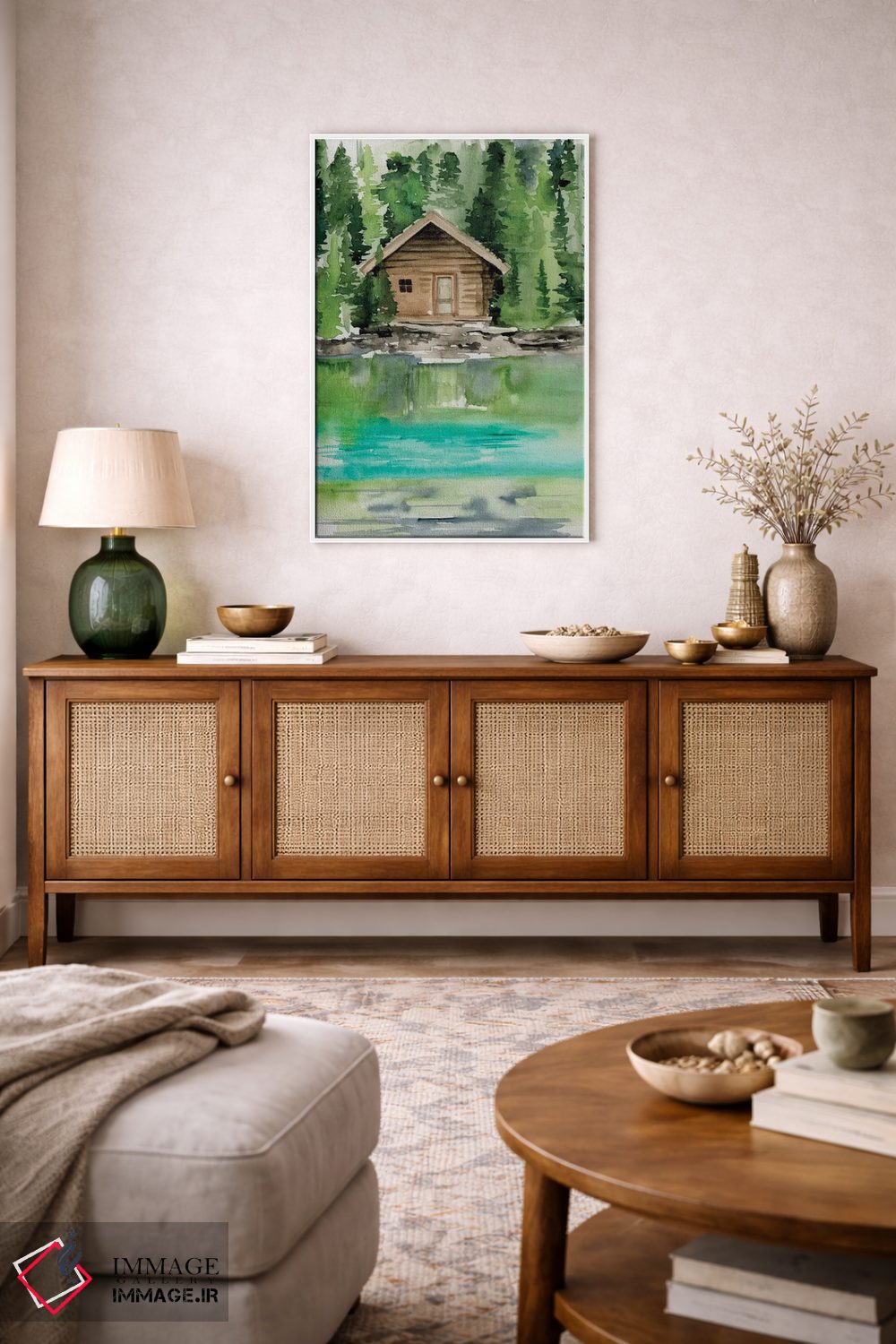 براساس پالت ترکیبی اثر، قاب تیک گرم (چوبی) پیشنهاد اول است و مشکی مات (فریم متوسط) مکمل. برای سفارشهای پروژهای با ابعاد و قابهای اختصاصی با ایماژ در تماس باشید.