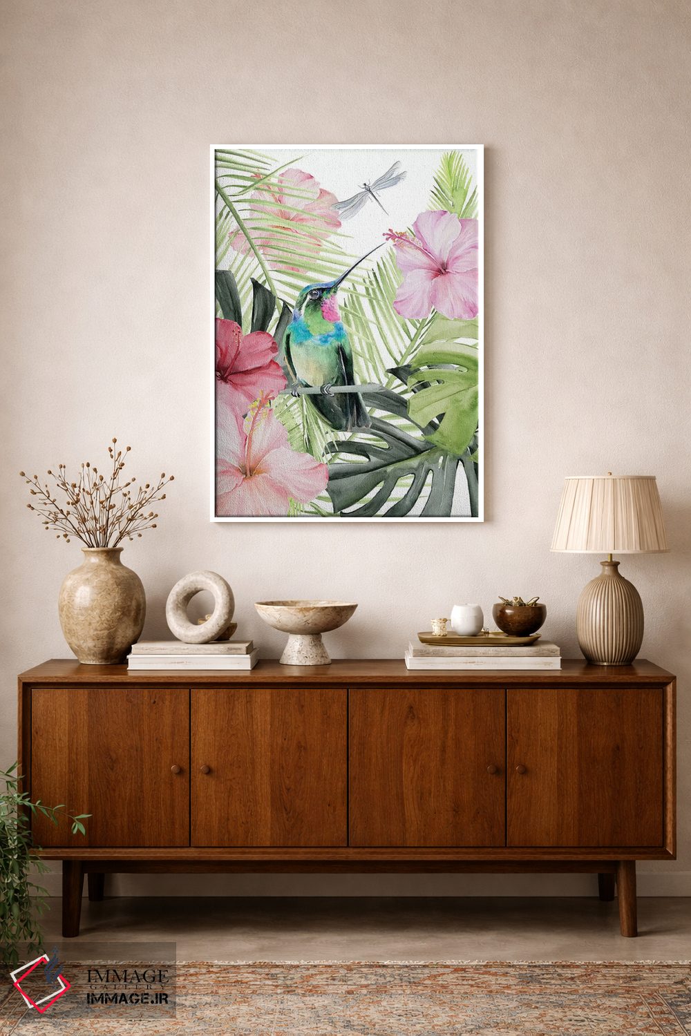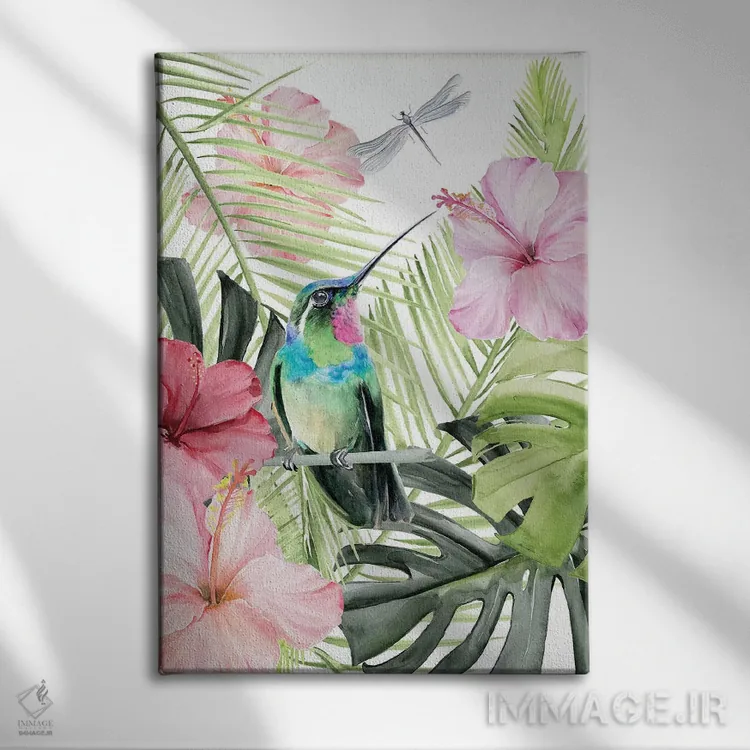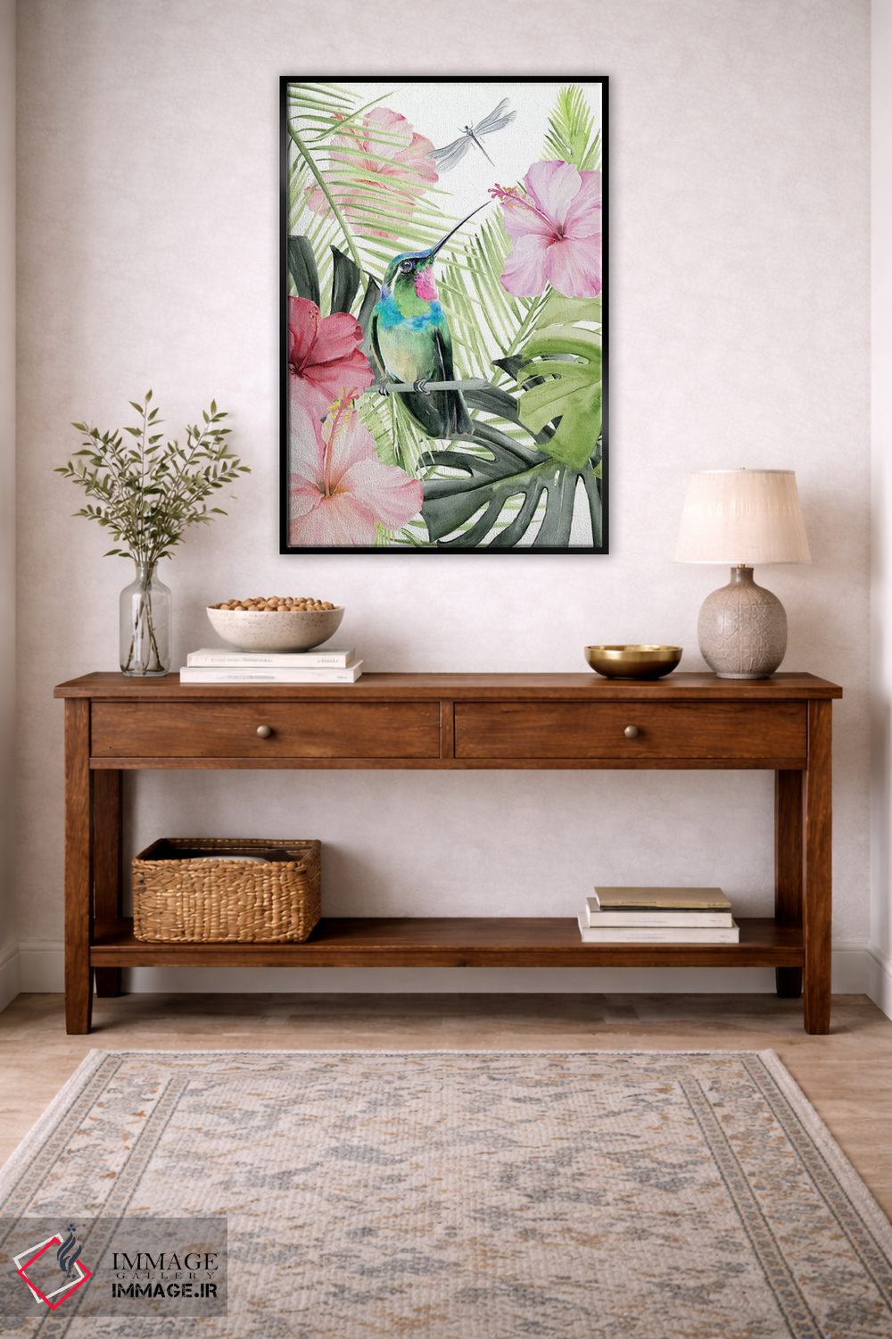 تابلو دکوراتیو شکوفه هیبیسکوس و مرغ مگس خوار ۲ اثر جنیفر پکستون پارکر