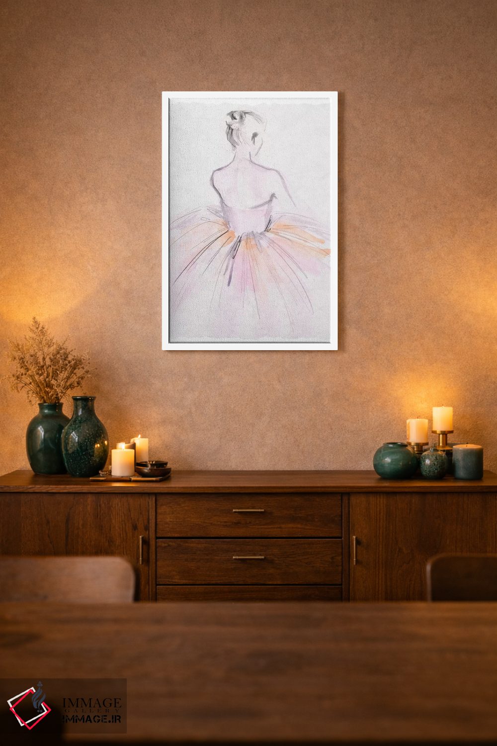 بوم گالری ایماژ طوری طراحی شده که اثر روی دیوار «پرداختشده» و حرفهای دیده شود—نه پرزرقوبرقِ بیپایه؛ بلکه دقیق و خوشپرداخت. بافت ظریف کنواس کمک میکند حس اثر هنری را در نگاه نزدیک نگه میدارد و در دکورهای مدرن و مینیمال خیلی خوب مینشیند. در چاپ جیکلی (Giclée)، برای آرتپرینتهای جدی استاندارد رایج است بهخصوص وقتی نور موضعی ملایم داشته باشید. حاصل کار، یک تابلو خوشنشین است که هم از دور اثرگذار است و هم از نزدیک خوشخوان؛ و اگر بخواهید، میتوان چیدمان را برای گالریوال هم پیشنهاد داد.
