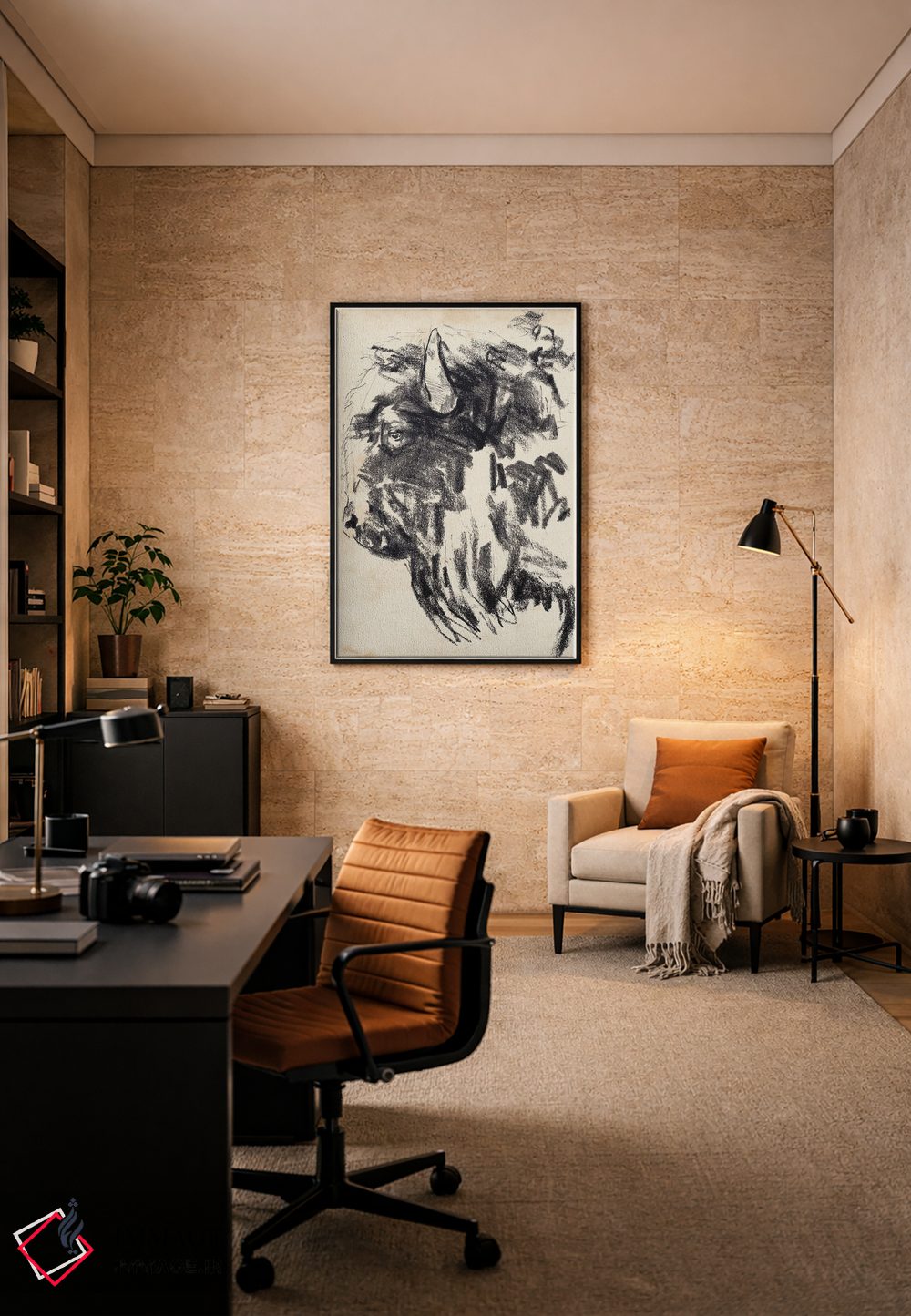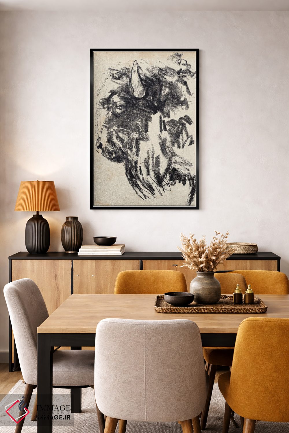 برای دیوارهای ساده، «اشاره سر گاومیش کوهاندار ۲» اثرِ «جنیفر پکستون پارکر» فضا را صمیمیتر و دعوتکنندهتر نشان میدهد؛ برای هدیهدادن به دوستداران حیوانات انتخابی خوشسلیقه است. در کنار گیاهان و نور طبیعی، جذابتر هم میشود.
