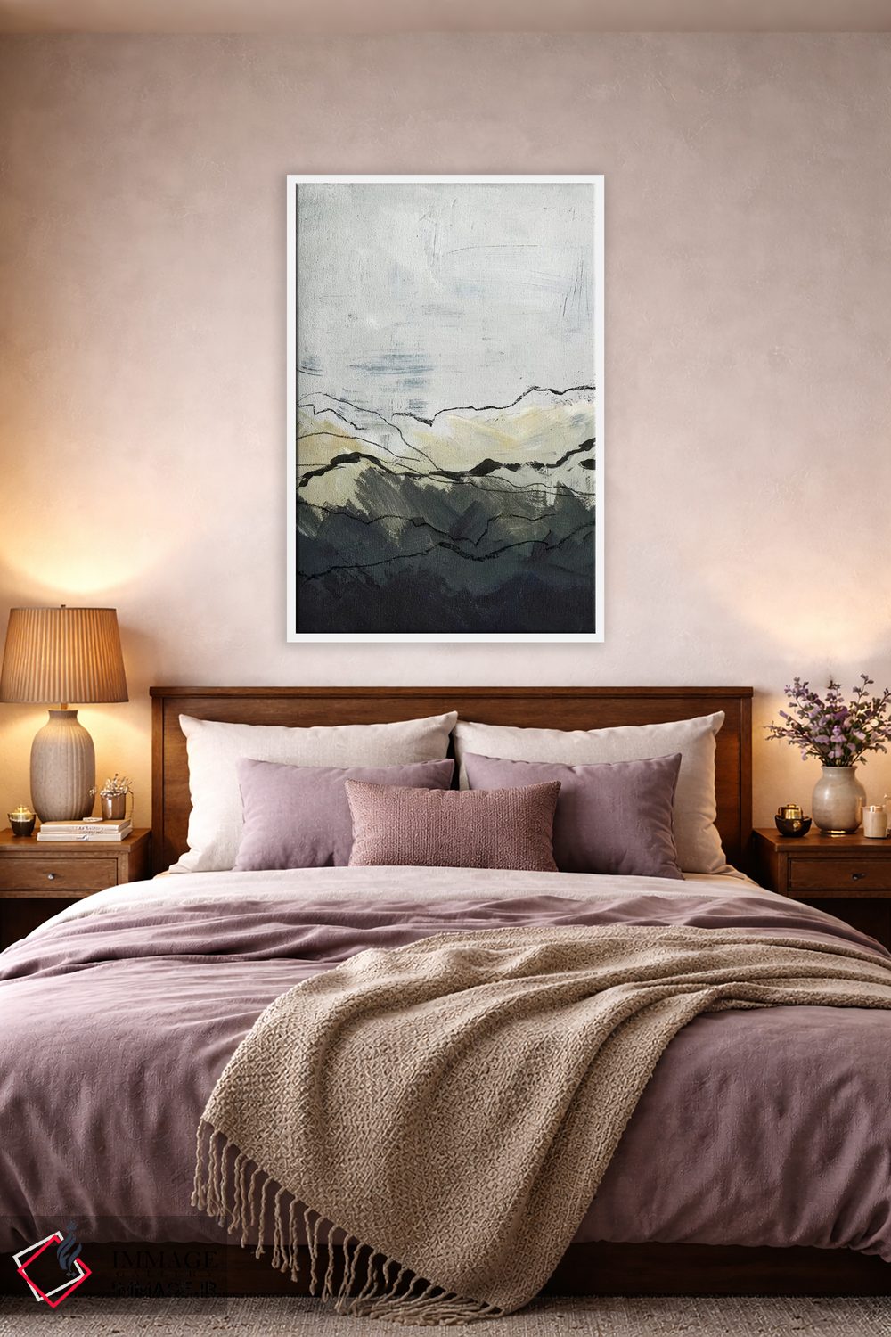 براساس پالت خنثی اثر، قاب بلوط روشن (چوبی) پیشنهاد اول است و استخوانی ملایم مکمل. برای سفارشهای پروژهای با ابعاد و قابهای اختصاصی با ایماژ در تماس باشید.