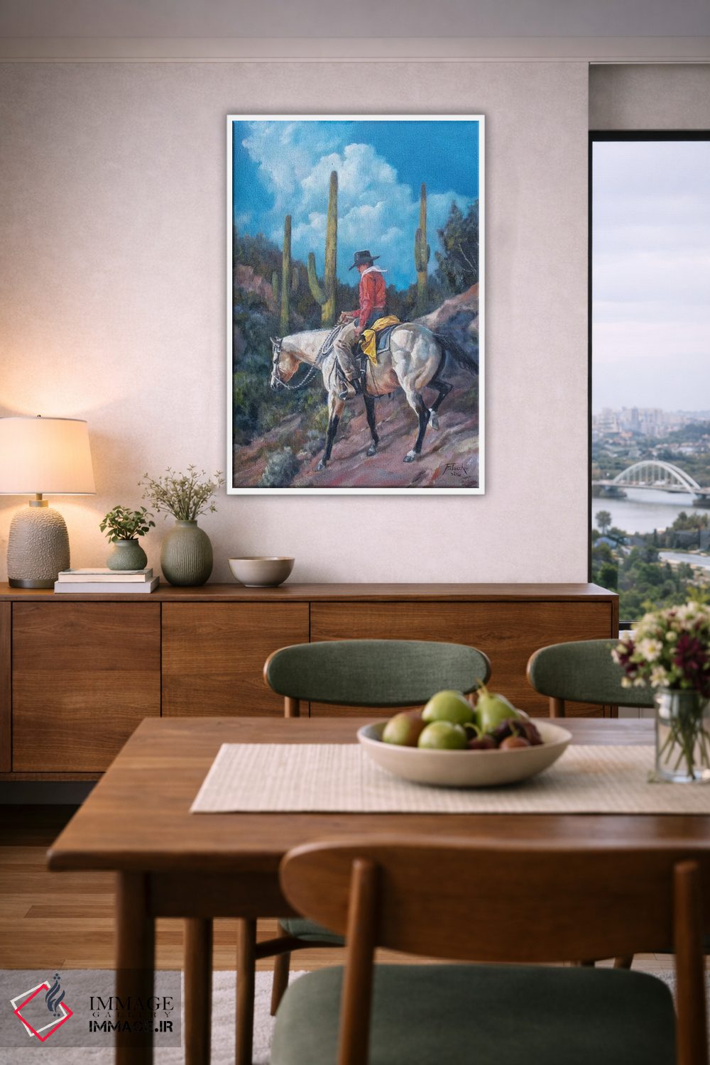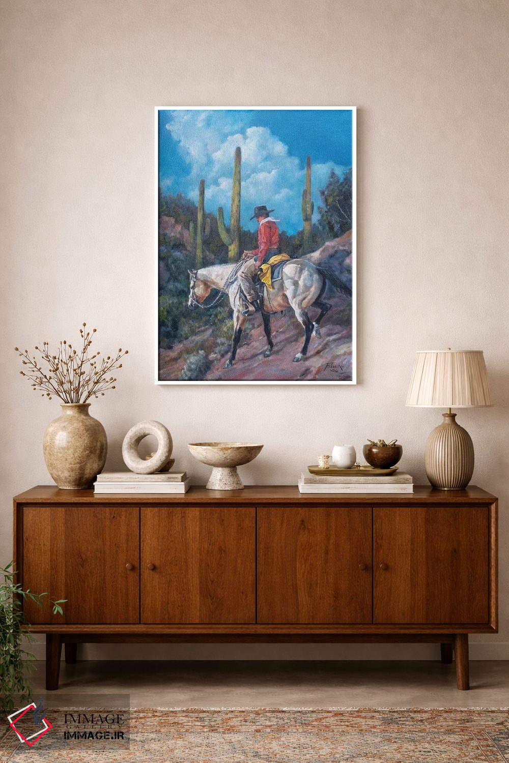 «میانبر ساگوارو (نوع کاکتوس آمریکایی)» اثرِ «یان پرلی» با موضوعِ این اثر، یک انتخاب دوستداشتنی برای افزودن انرژی و صمیمیت به فضاست.