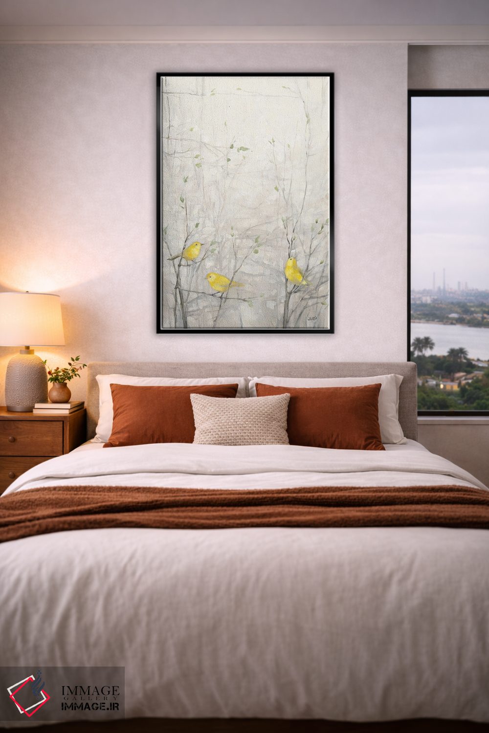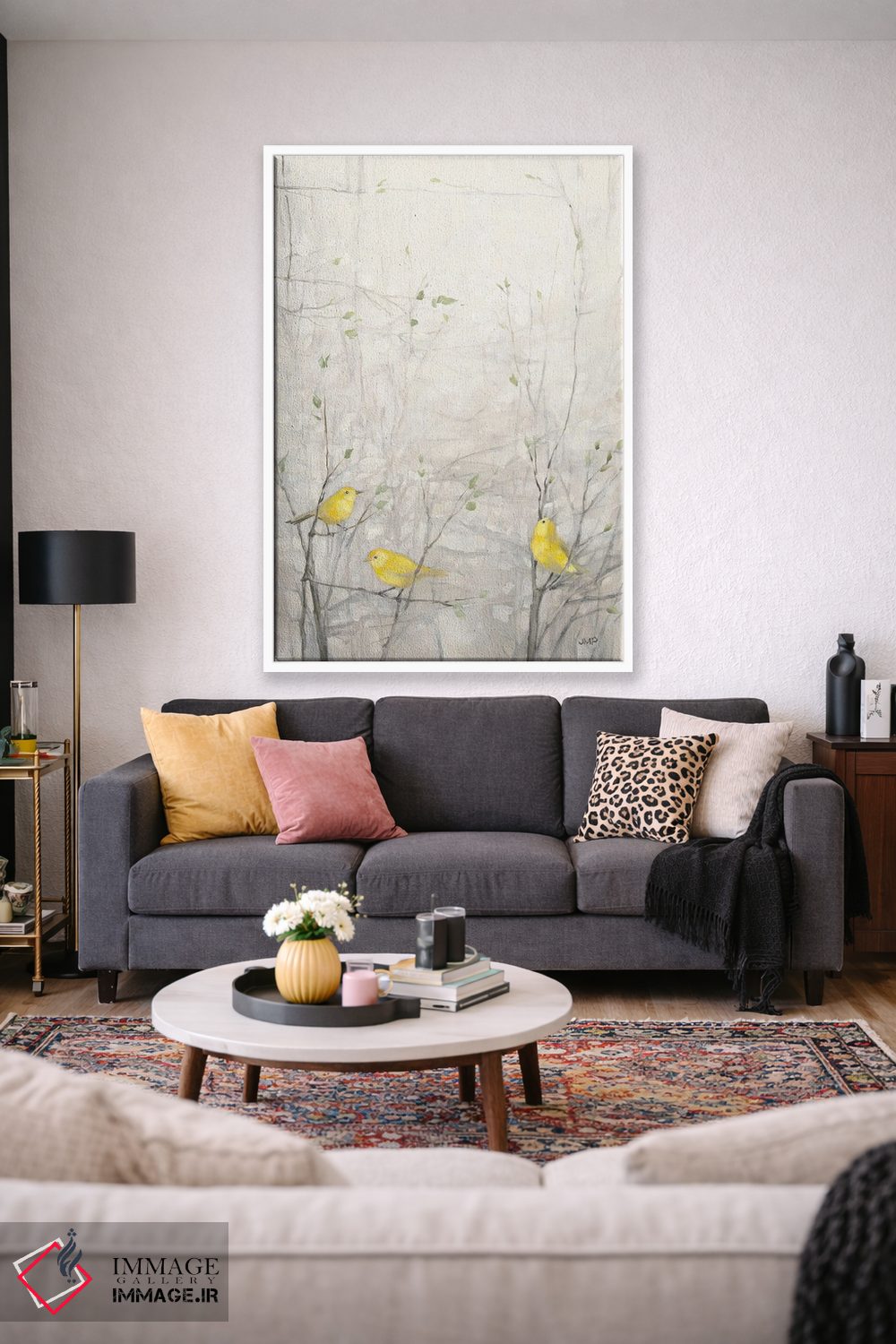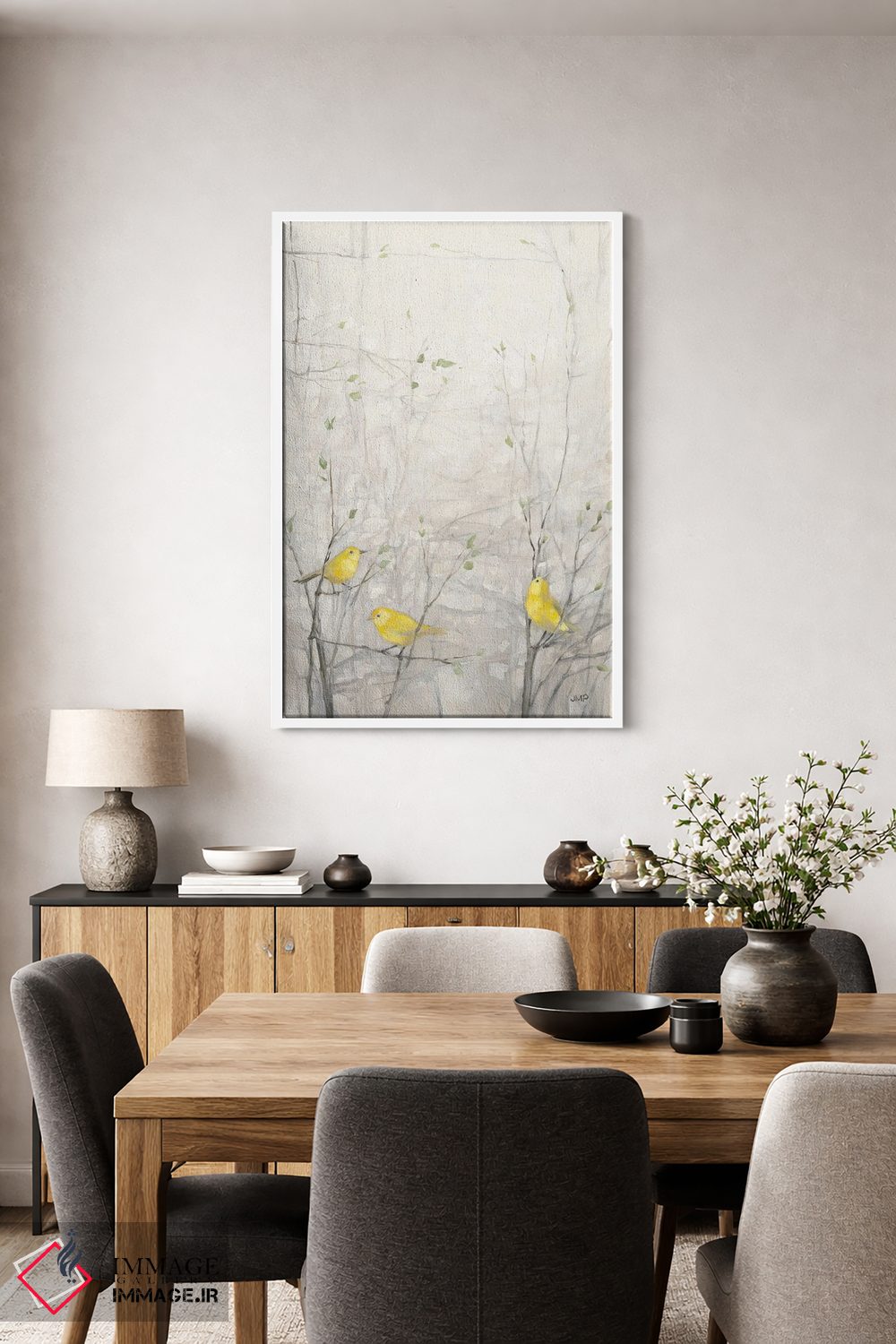 این اثر با عنوان «پرندگان روی درخت ۱» اثرِ «جولیا پورینتون» یک لبخند ریز به چیدمان میدهد؛ برای راهروها و ورودیهای گرم انتخابی خوشسلیقه است. در کنار گیاهان و نور طبیعی، جذابتر هم میشود.