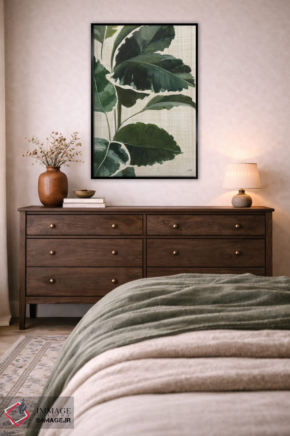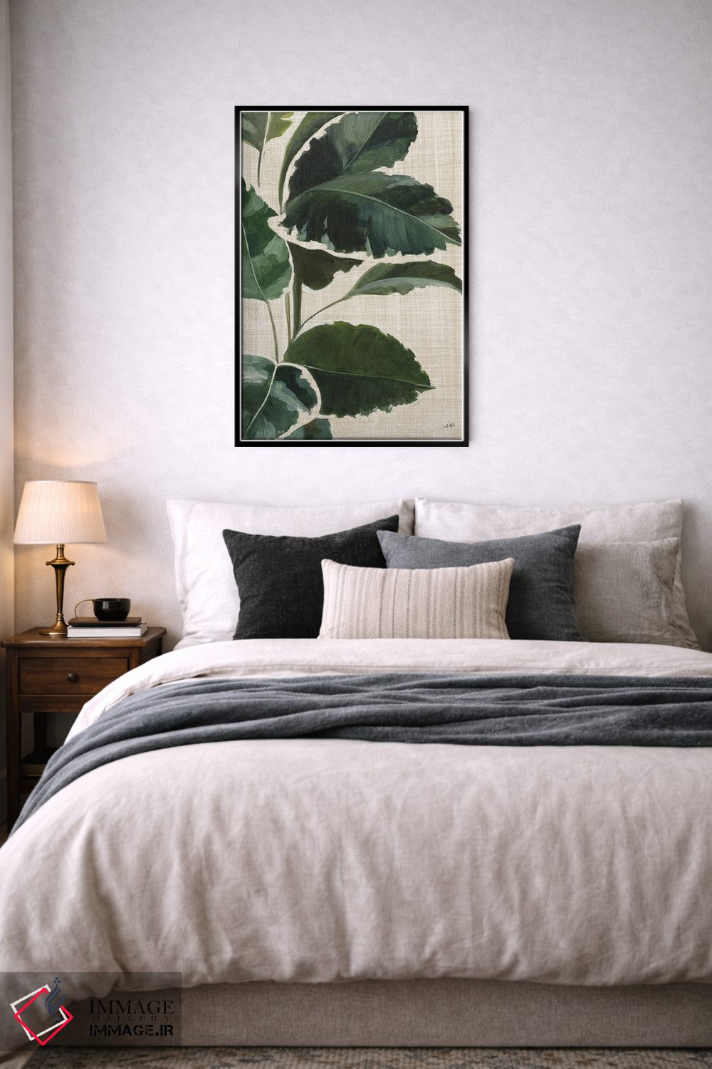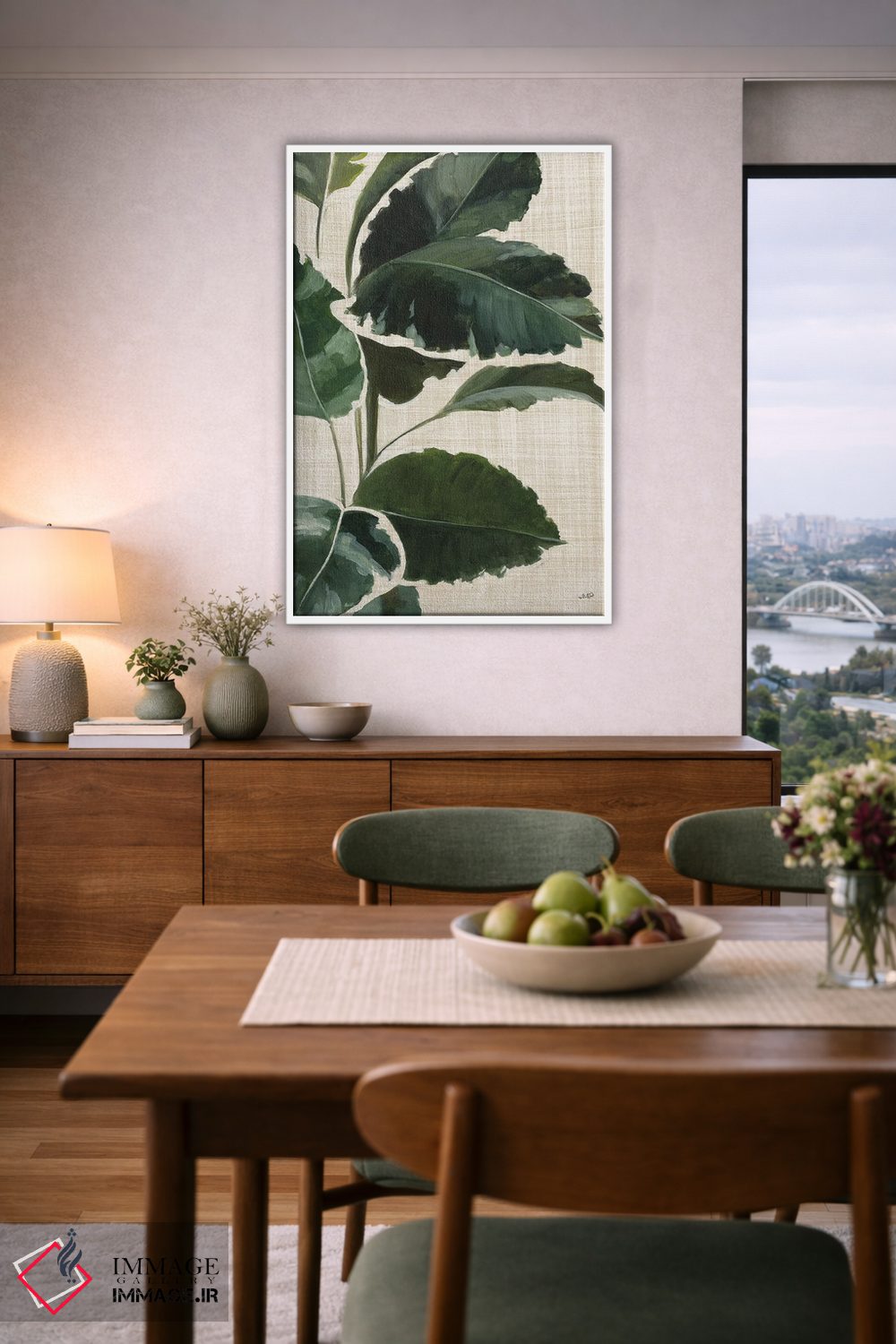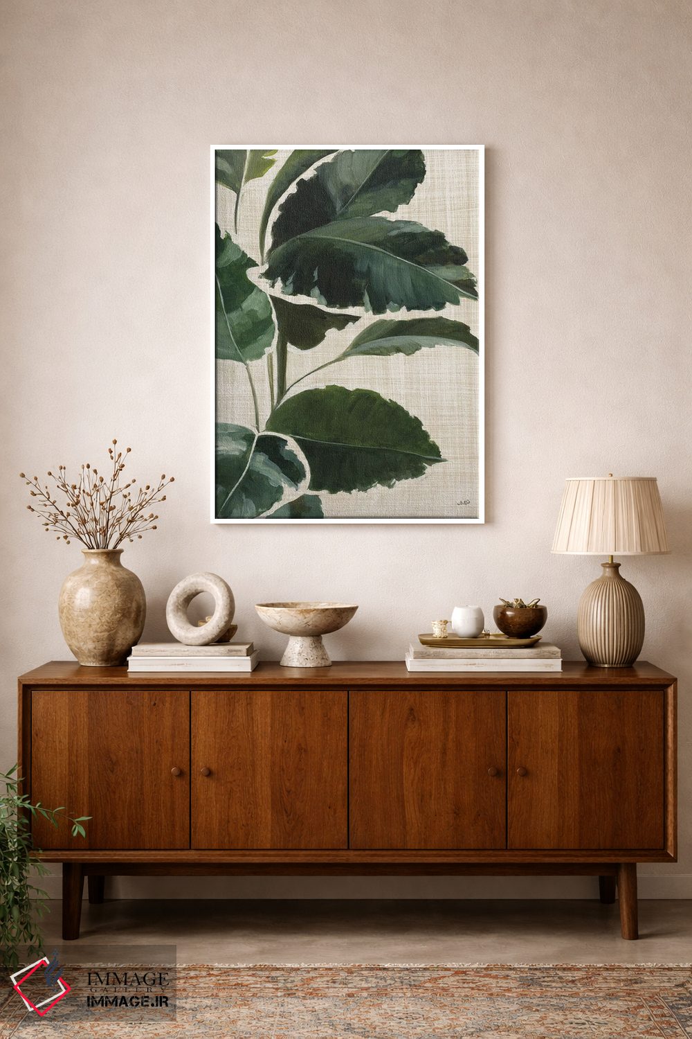 برای دیواری که میخواهید نرمتر دیده شود، «مطالعهٔ گرمسیری ۱ (پارچه کتان)» اثرِ «جولیا پورینتون» برای دیوارهای ساده، یک لطافتِ دقیق میسازد؛ برای کافهها و فضاهای آرام انتخابی خوشسلیقه است. حضورش آرام است، اما بیاثر نیست.