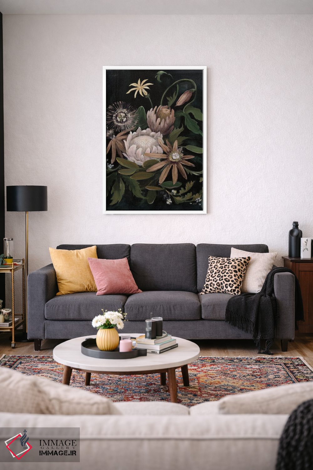 برای فضاهایی که به لطافت نیاز دارند، «نمایشگاه گل ۲ (خنثی)» اثرِ «جولیا پورینتون» حس فصل را آرام وارد فضا میکند؛ برای دکورهای اسکانباوراوی انتخابی خوشسلیقه است. در کنار گیاهان آپارتمانی، هماهنگتر هم میشود.
