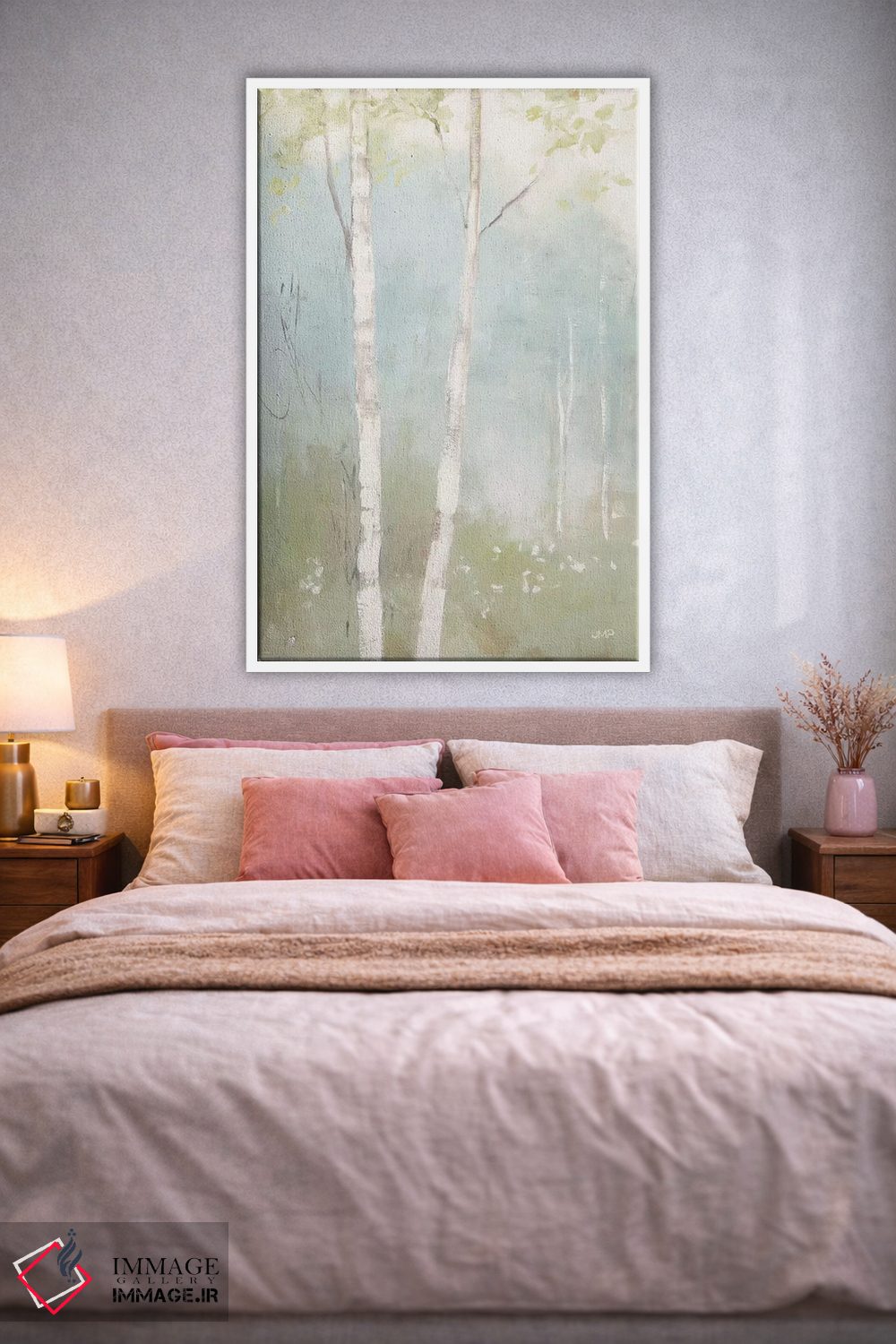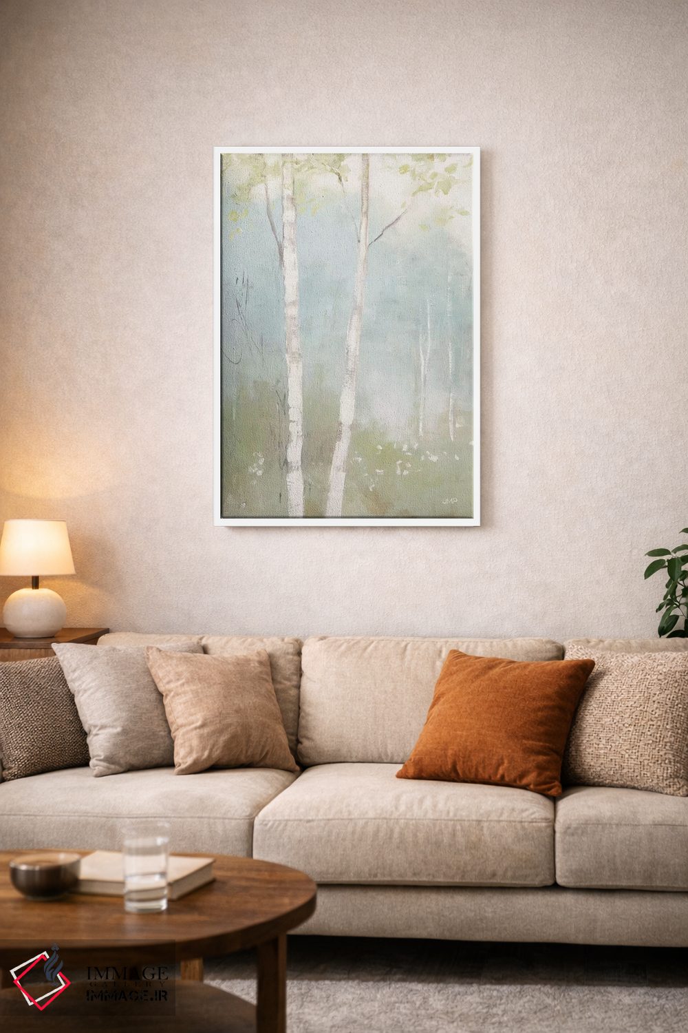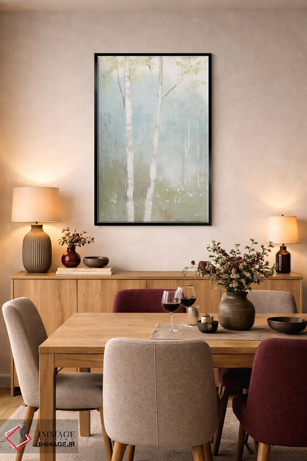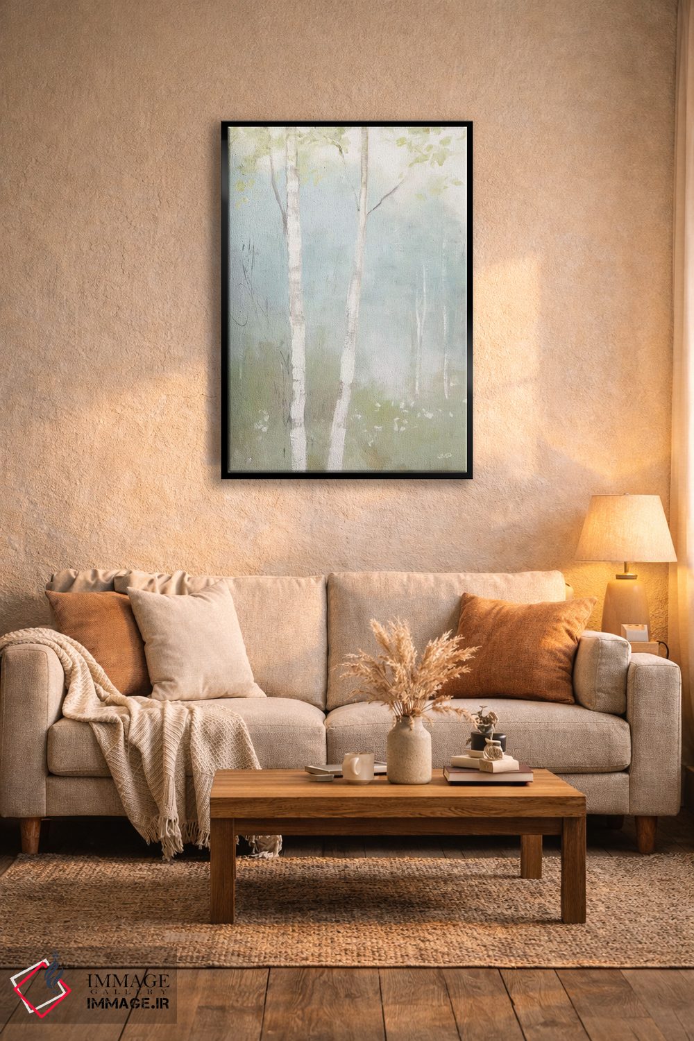 براساس پالت خنثی اثر، قاب بلوط روشن (چوبی) پیشنهاد اول است و استخوانی ملایم مکمل. برای سفارشهای پروژهای با ابعاد و قابهای اختصاصی با ایماژ در تماس باشید.