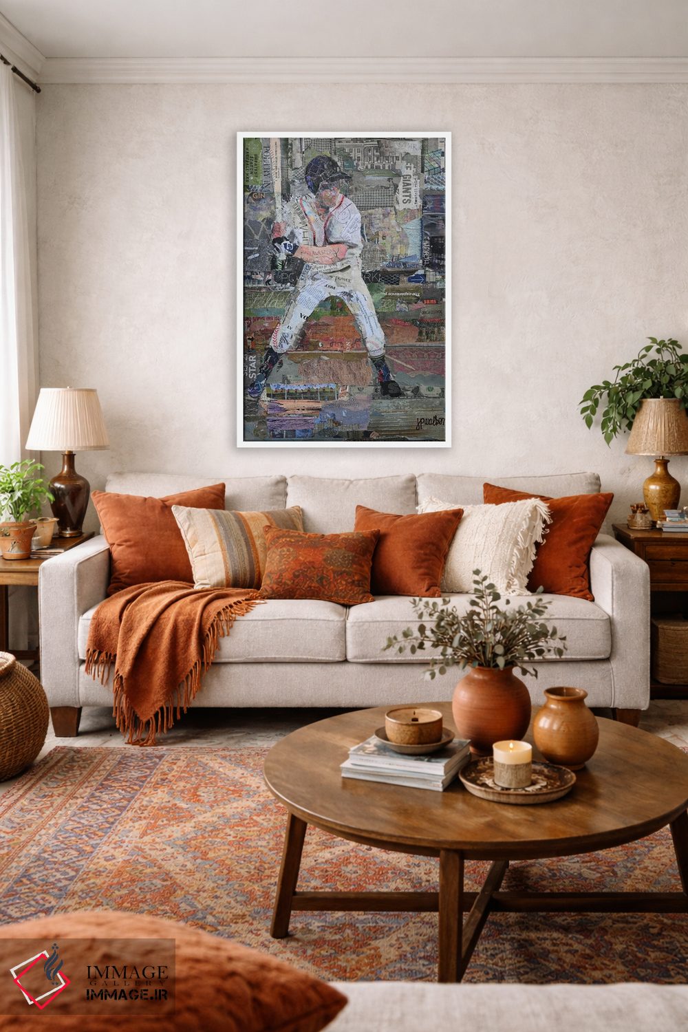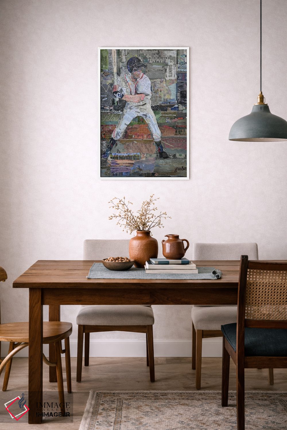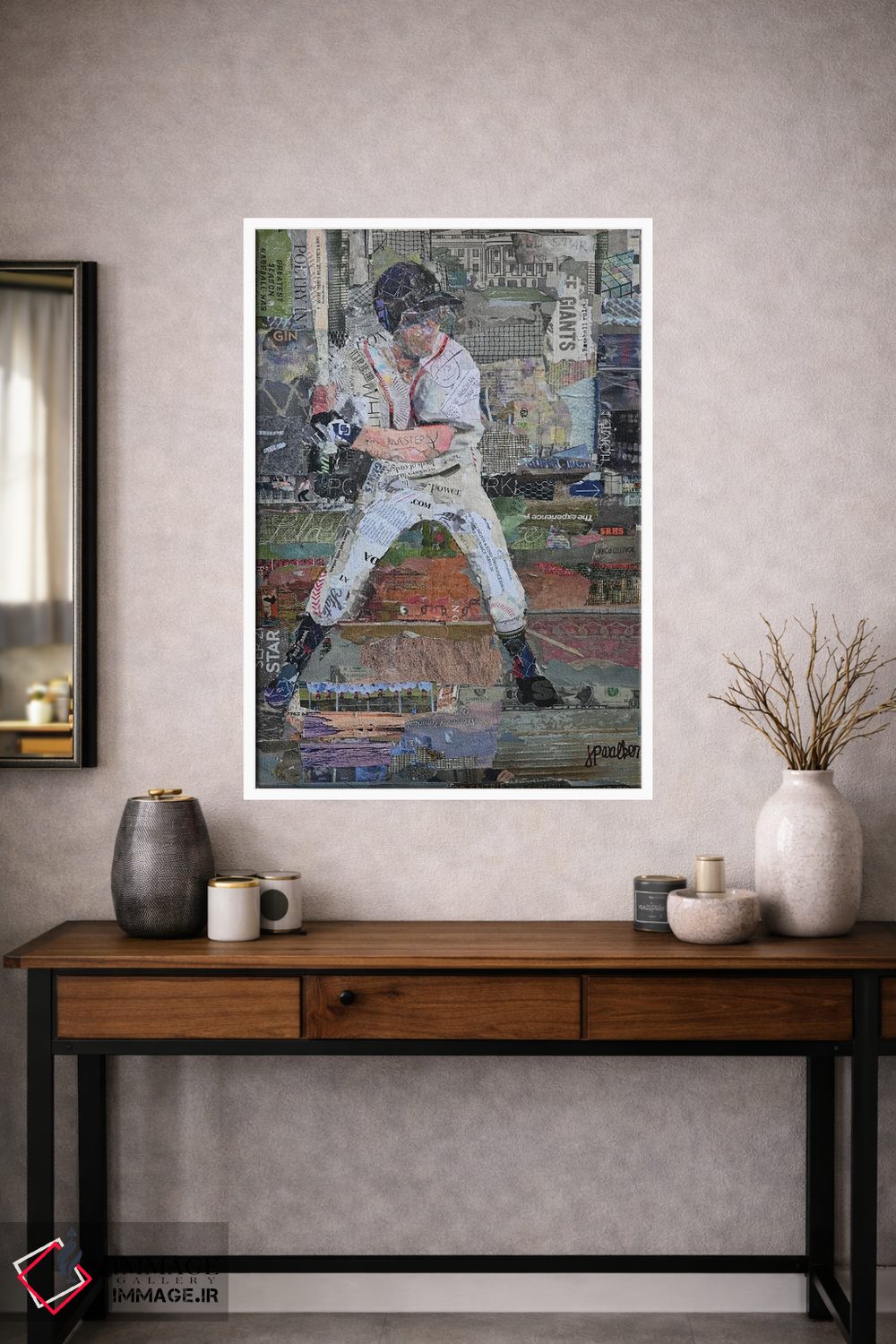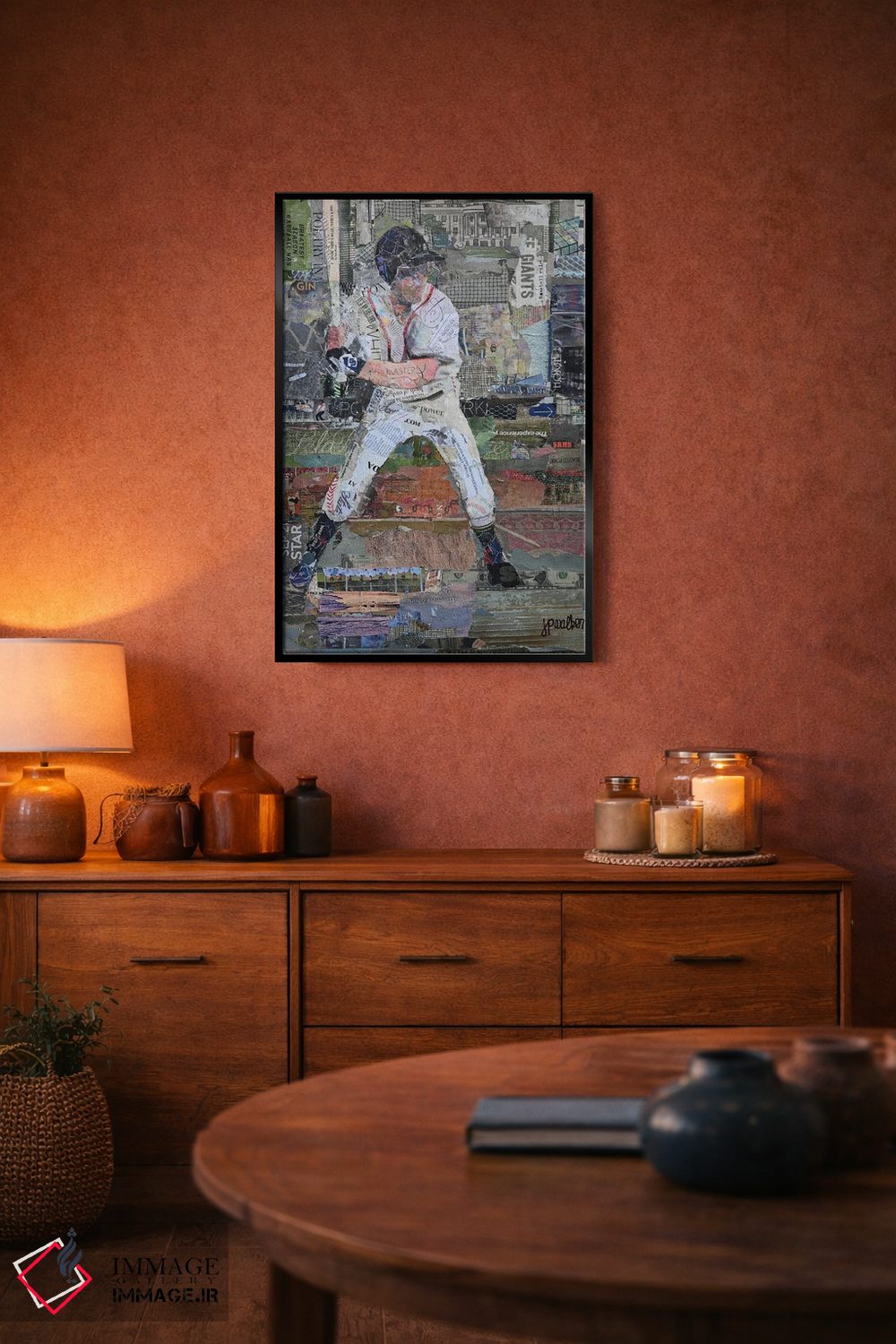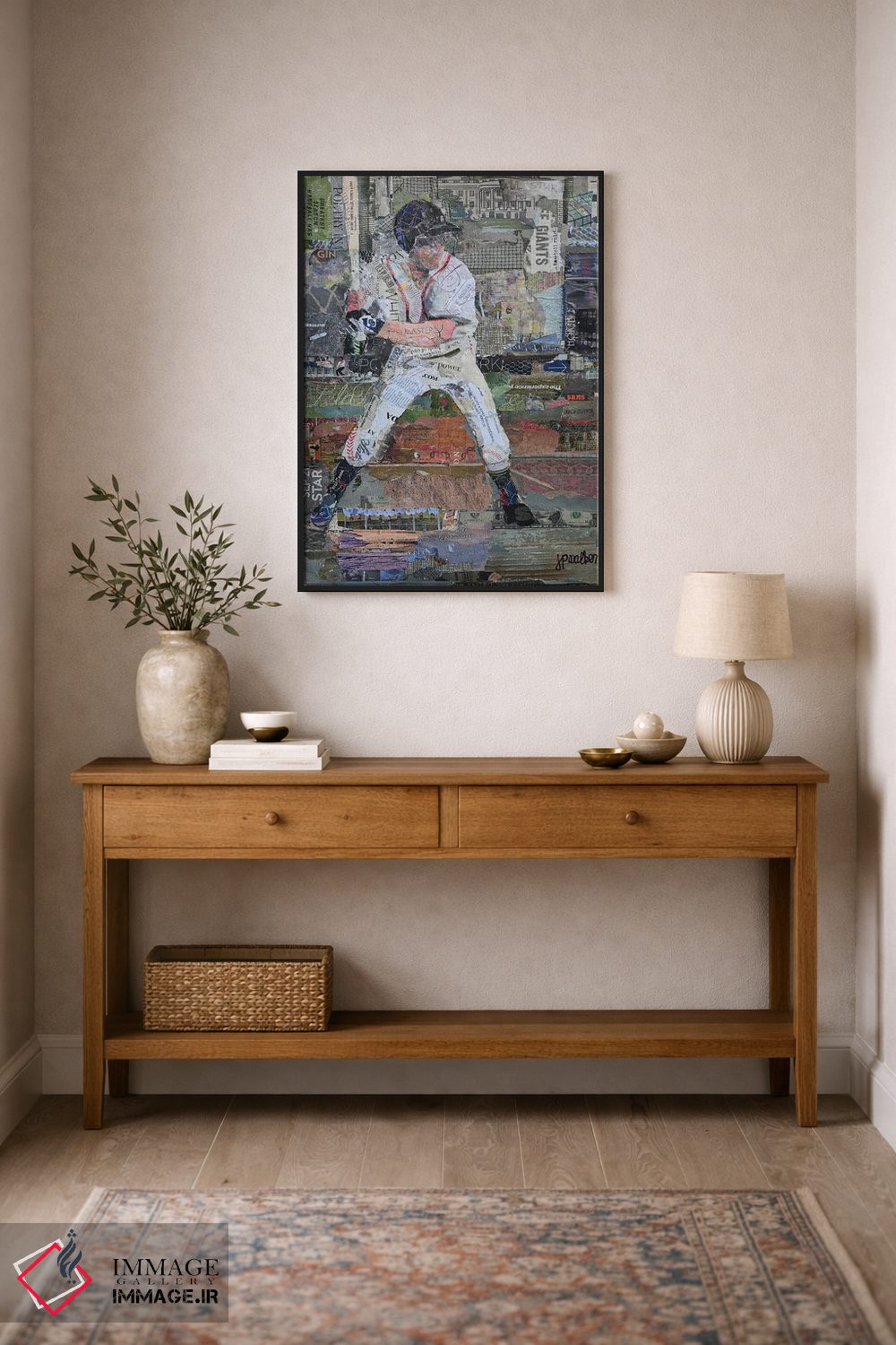 گاهی یک اثر کافیست تا فضا جمعوجور شود؛ «قوانین بیسبال» اثرِ «جیمی پاولیچ—واکر» جلوهٔ اتاق را یک پله حرفهایتر میکند؛ برای اتاق کار و گوشهٔ مطالعه پیشنهاد میشود. در کنار قاب مناسب، جلوهٔ کار چند برابر میشود.