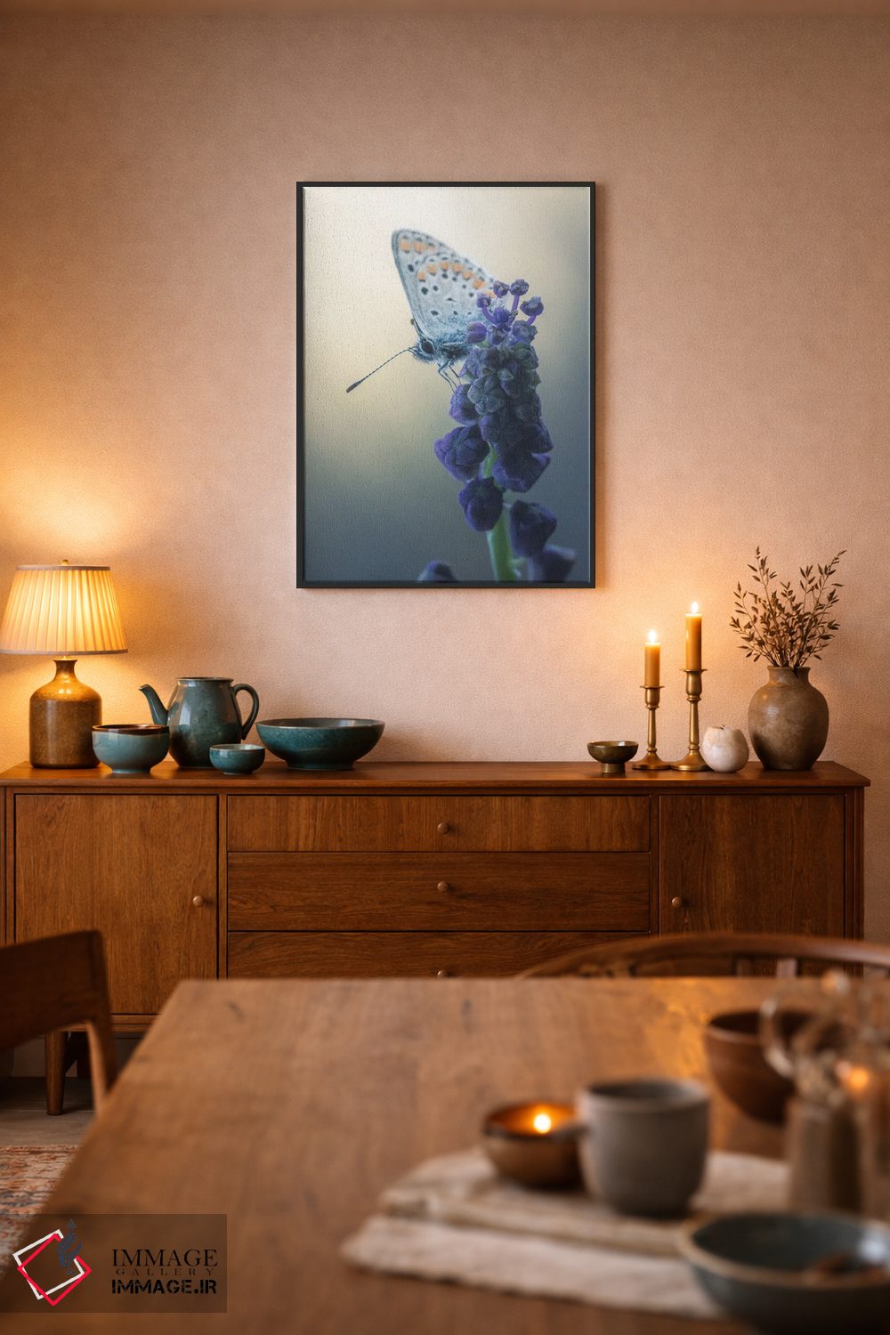 این اثر با عنوان «پروانه روی گل لامپاسونه» اثرِ «جفرسون کاستلاری» برای دکورهای مینیمال، یک نقطهٔ توجه میسازد؛ برای هدیهدادن به دوستداران حیوانات انتخابی خوشسلیقه است. به دیوار، قصه میدهد—اما قصهای آرام و شیک.