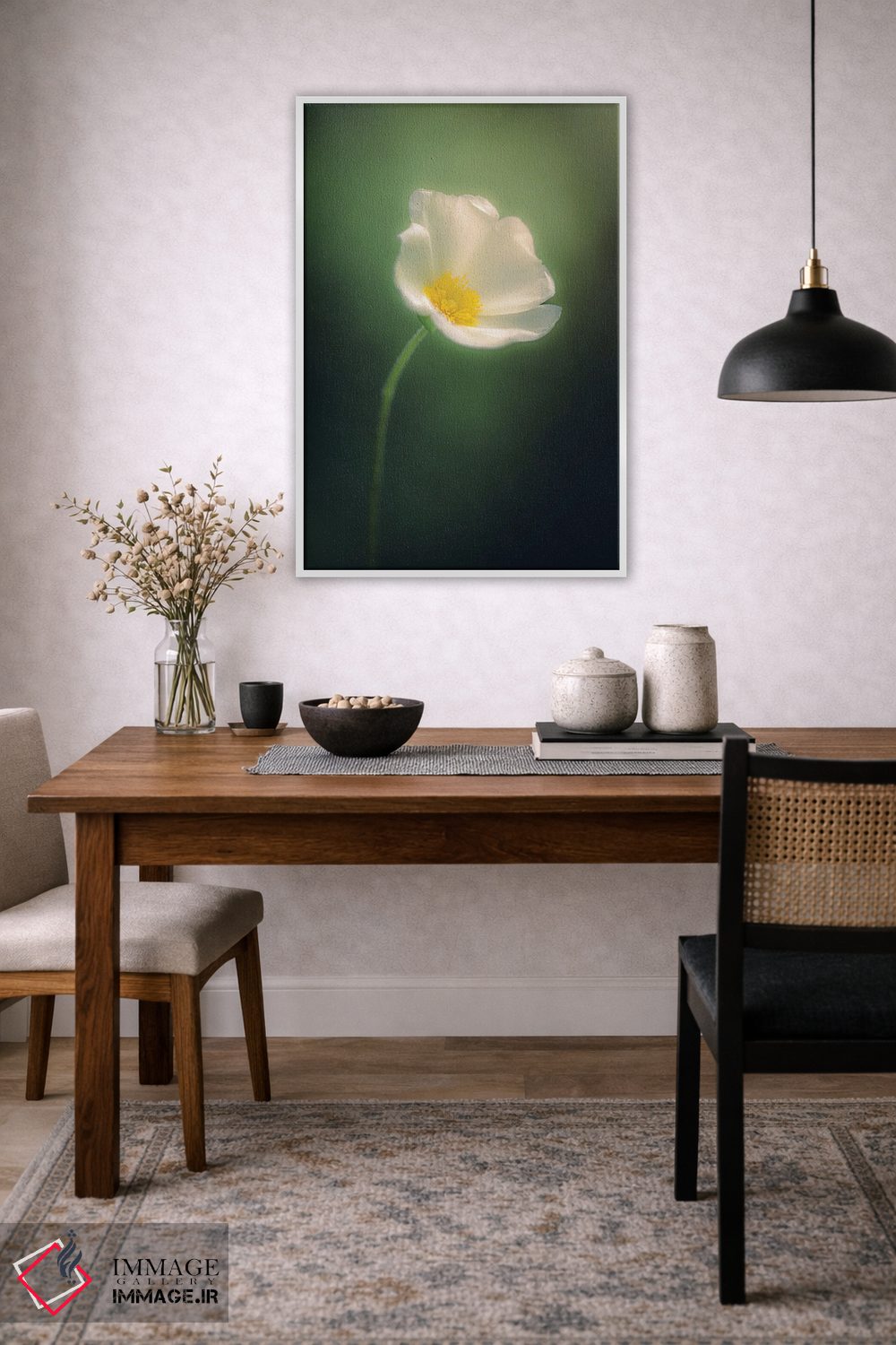بوم گالری ایماژ نسخهی چیدماناتیوِ حرفهای از یک اثر هنری است؛ روی کنواس سفیدِ یکدست و بدون اسید با چاپ هنری به استاندارد جیکلی (Giclée) با رنگهای آرشیوی UltraChrome HDR برای طبیعیتر دیده شدن رنگها روی دیوار، کار یکدستتر و خوشکیفیتتر دیده میشود. کلافکشی مرتب و یراق نصب استاندارد، تجربهی نصب را ساده میکند.