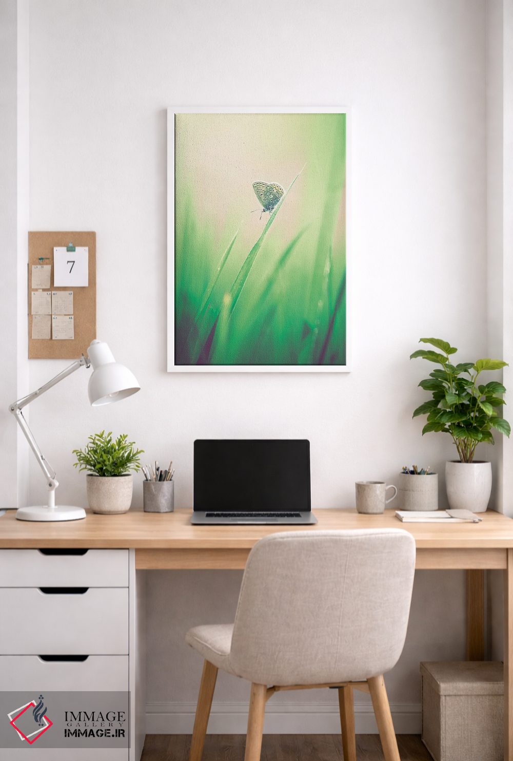اگر ابعاد دیوار را دارید، راهنمایی لازم را دریافت میکنید تا انتخاب نهایی دقیقتر انجام شود. برای اینکه اثر در محیط «مینیمال و آرام» دیده شود، انتخاب قاب مناسب کمک بزرگی است و چیدمان را یکدستتر نشان میدهد.