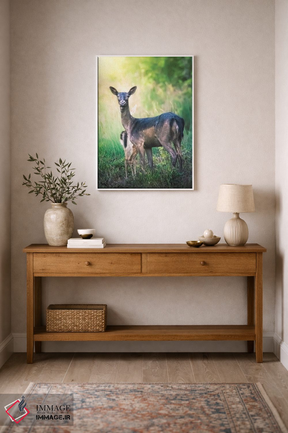 در «آهو مادر در حال محافظت و پنهان کردن بچهاش» اثرِ «جفرسون کاستلاری»، حضور حیوانات گرما و شخصیت به فضا اضافه میکند؛ برای خانههایی با چوب و پارچههای گرم انتخابی خوشسلیقه است. هر بار نگاهش میکنید، یک جزئیات تازه به چشم میآید.
