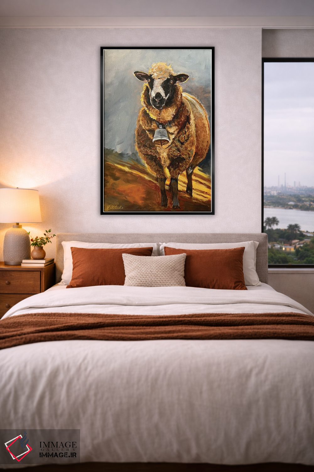 تابلو دکوراتیو گوسفند در غروب اثر جنیفر رداستریک - نمای روبه‌رو روی دیوار
