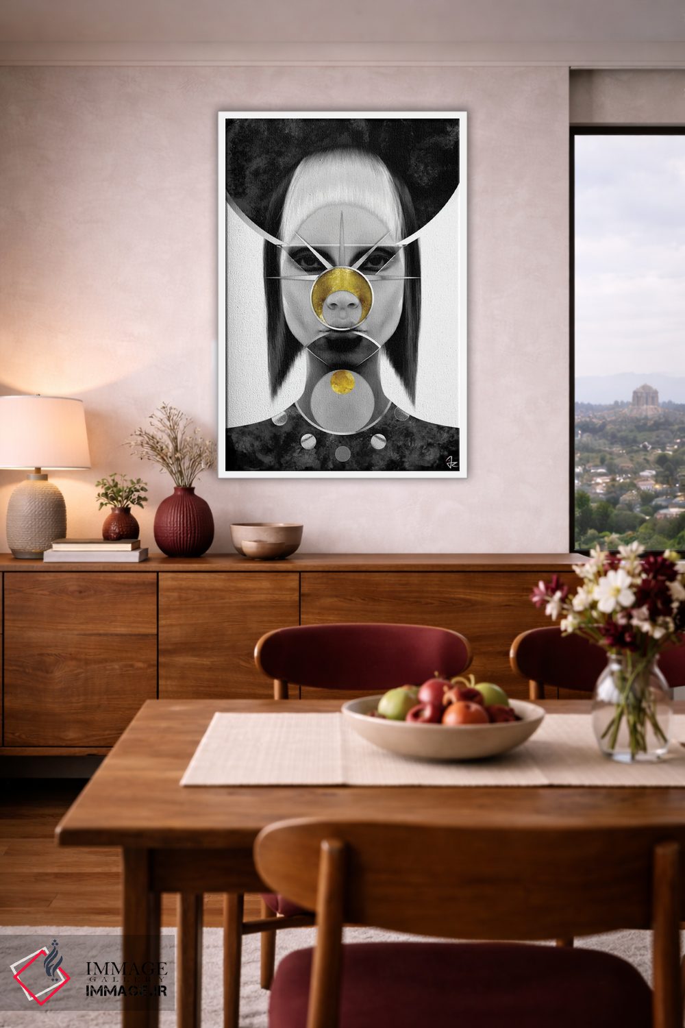 بوم گالری ایماژ نسخهی دکوراتیوِ سطحبالا از یک اثر هنری است؛ روی کنواس بدون اسید با بافت ظریف و یکنواخت با چاپ هنریِ دقیق (Giclée) برای گذارهای نرمتر و وضوح بالاتر و جوهرهای آرشیوی Epson UltraChrome HDR برای بازنمایی بهتر تونهای حساس؛ خروجی، یک «تابلو» است نه یک چاپ ساده. هر تابلو بهصورت سفارشی روی چهارچوب کشیده میشود و با یراق مناسب آمادهی نصب است.