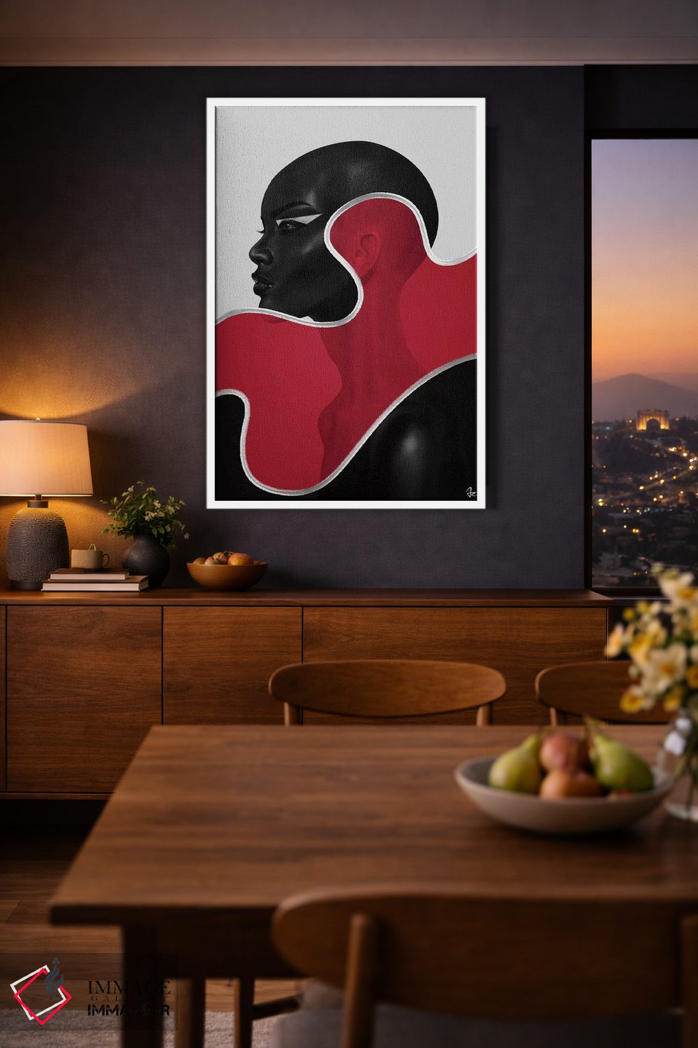 براساس پالت گرم اثر، قاب تیک گرم (چوبی) پیشنهاد اول است و مشکی مات (فریم متوسط) مکمل. برای سفارشهای پروژهای با ابعاد و قابهای اختصاصی با ایماژ در تماس باشید.