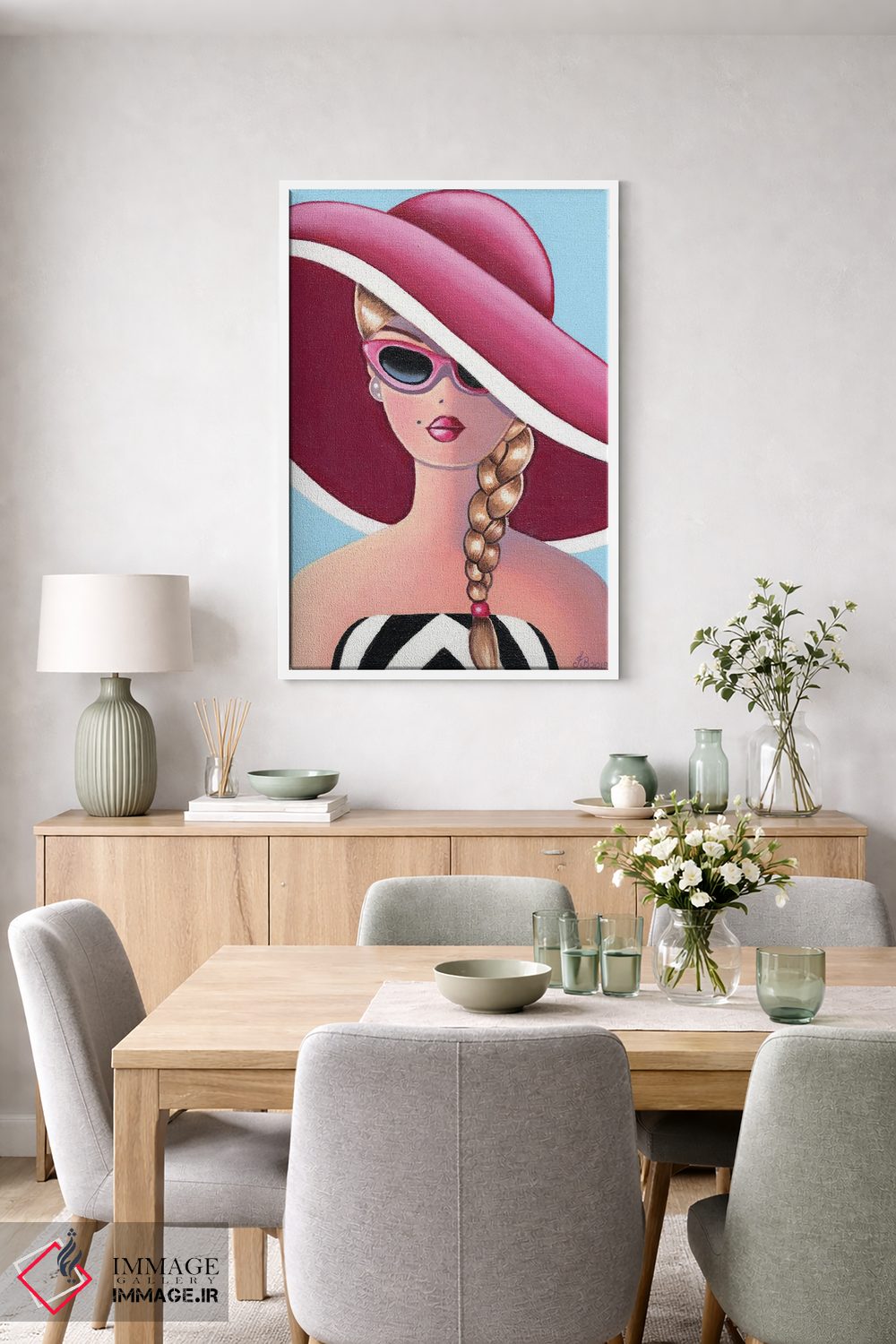 اگر اهل «کم اما درست» هستید، «کلاه صورتی» اثرِ «هنر رترو جولی (استودیو/برند هنری)» یک «نقطهٔ مکث» خوشسلیقه میسازد؛ برای دیوارهای گالریوار و ترکیب چند اثر پیشنهاد میشود. در کنار گیاهان آپارتمانی هم جلوهٔ لطیفی پیدا میکند.