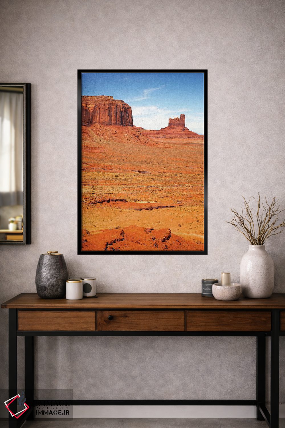 براساس پالت ترکیبی اثر، قاب تیک گرم (چوبی) پیشنهاد اول است و مشکی مات (فریم متوسط) مکمل. برای سفارشهای پروژهای با ابعاد و قابهای اختصاصی با ایماژ در تماس باشید.
