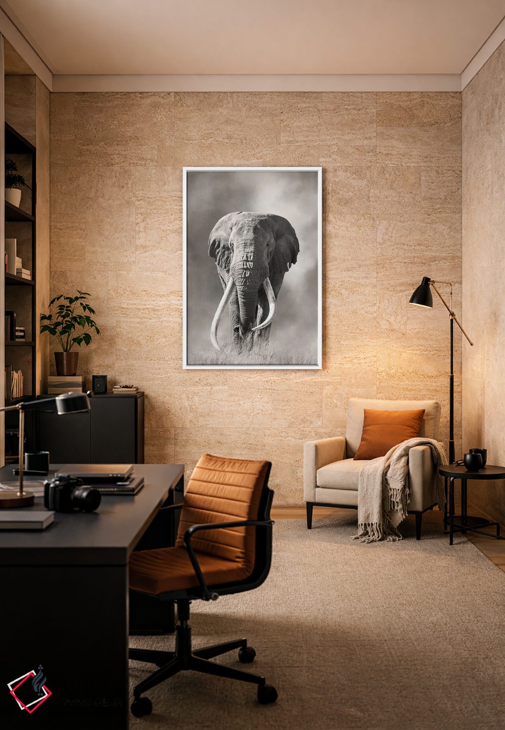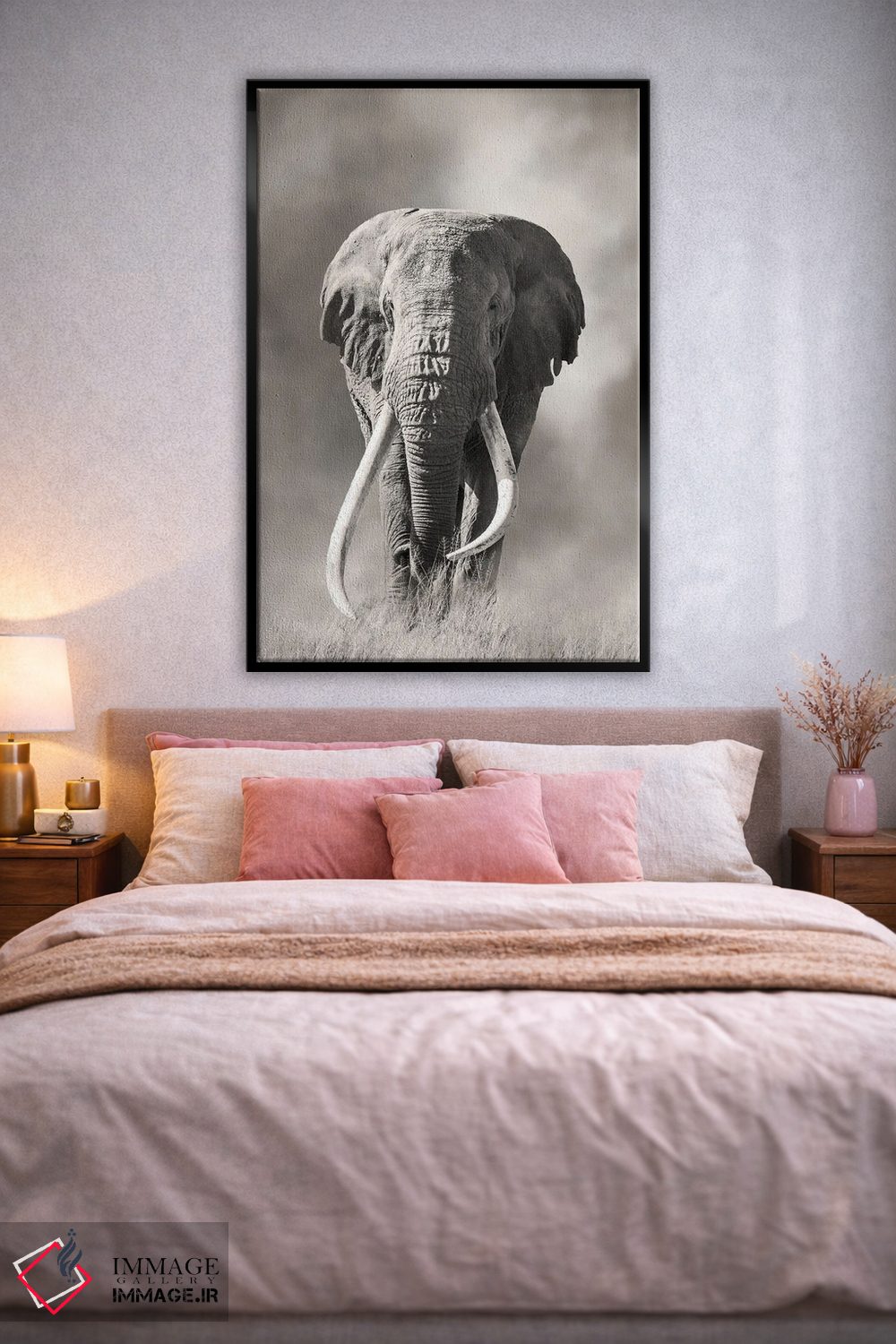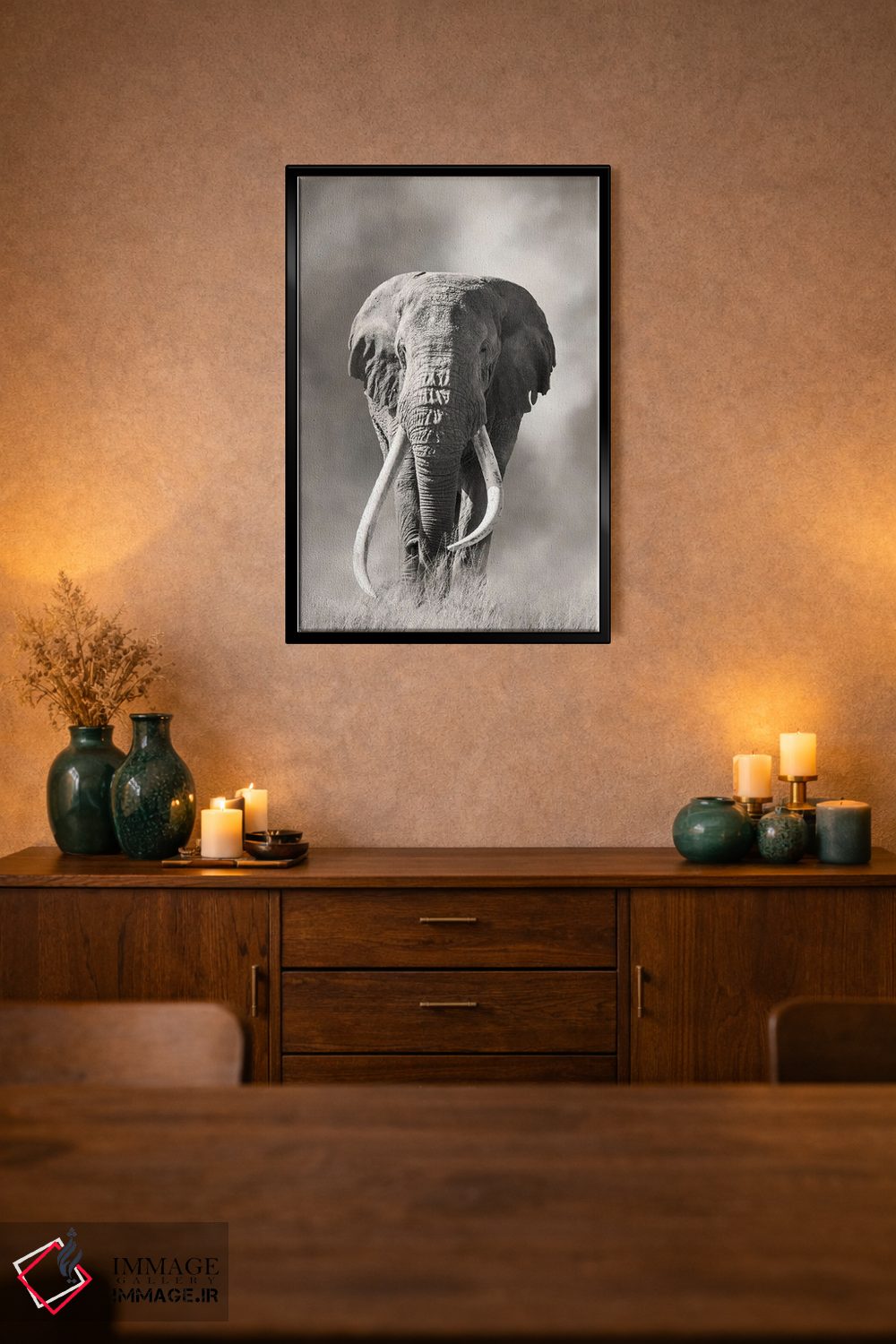 اگر به آثار حیوانات علاقه دارید، «فیل نر عظیم با عاج بزرگ از گرد و غبار پارک ملی امبوسلی بیرون میآید» اثرِ «جین ریکس» گرما و شخصیت به فضا اضافه میکند، برای راهروها و ورودیهای گرم گزینهٔ مناسبیست. در کنار گیاهان و نور طبیعی، جذابتر هم میشود.