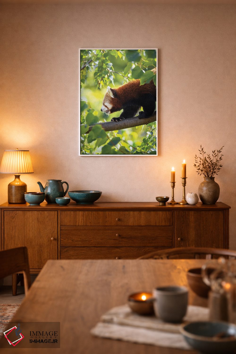 «پاندای قرمز در حال راه رفتن بر شاخه درخت» اثرِ «جین ریکس» میتواند فضا را صمیمیتر و دعوتکنندهتر نشان بدهد؛ برای دیوار کنار میز کار پیشنهاد میشود. اگر دنبال اثر دوستداشتنیِ «بیغلو» هستید، این یکی دقیق مینشیند.