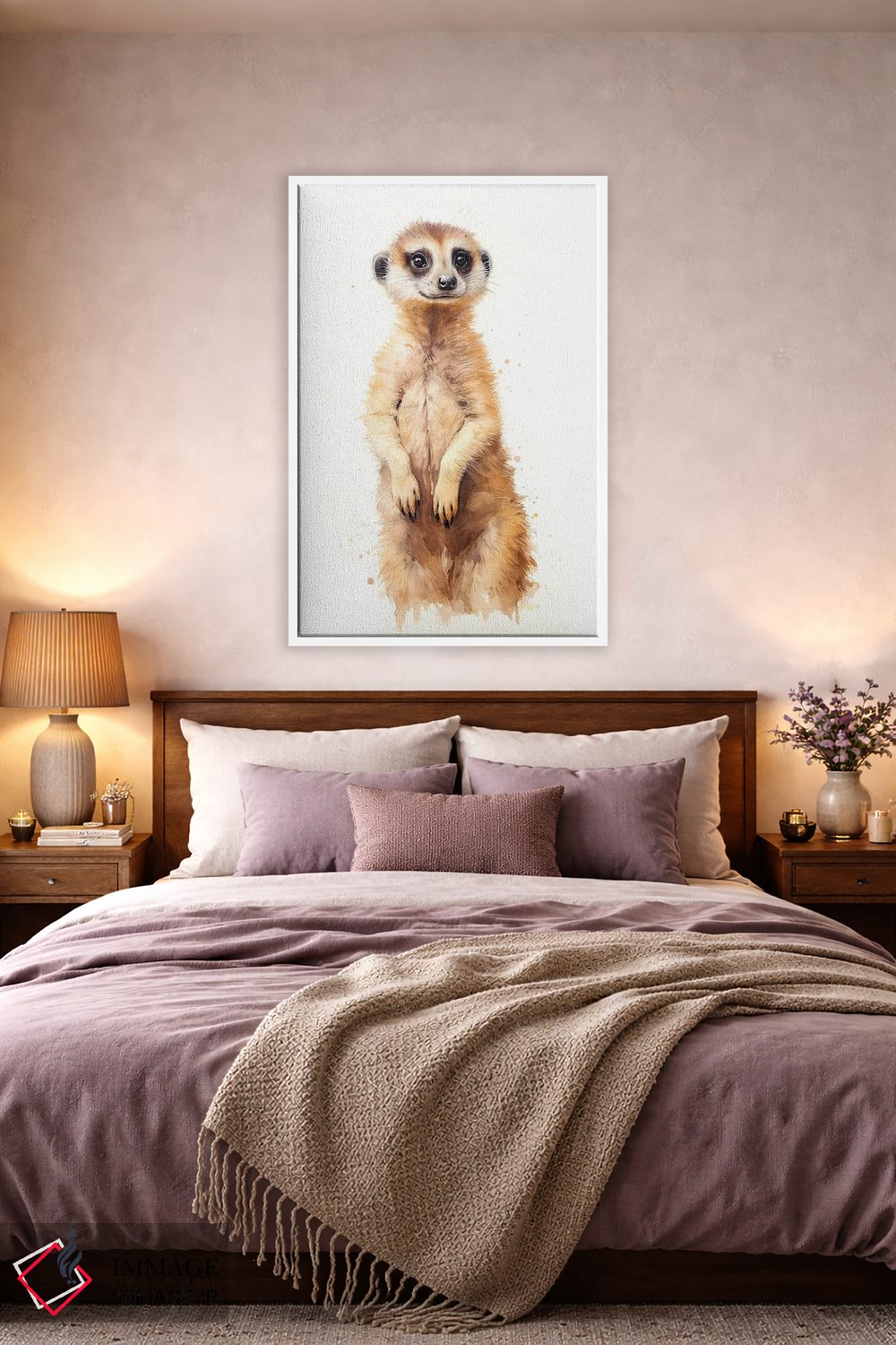 براساس پالت گرم اثر، قاب بلوط روشن (چوبی) پیشنهاد اول است و استخوانی ملایم مکمل. برای سفارشهای پروژهای با ابعاد و قابهای اختصاصی با ایماژ در تماس باشید.