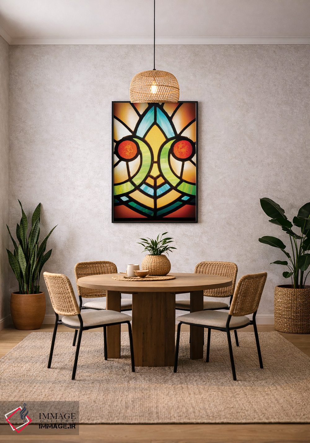 برای دکورهای ساختارمند و مدرن، «شیشههای رنگی کلیسا» اثرِ «جین ریکس» پرسپکتیو و خطوط را به مرکز توجه تبدیل کند؛ برای اتاق جلسات انتخابی خوشسلیقه است. فضا را شلوغ نمیکند؛ فقط ساختار میدهد.
