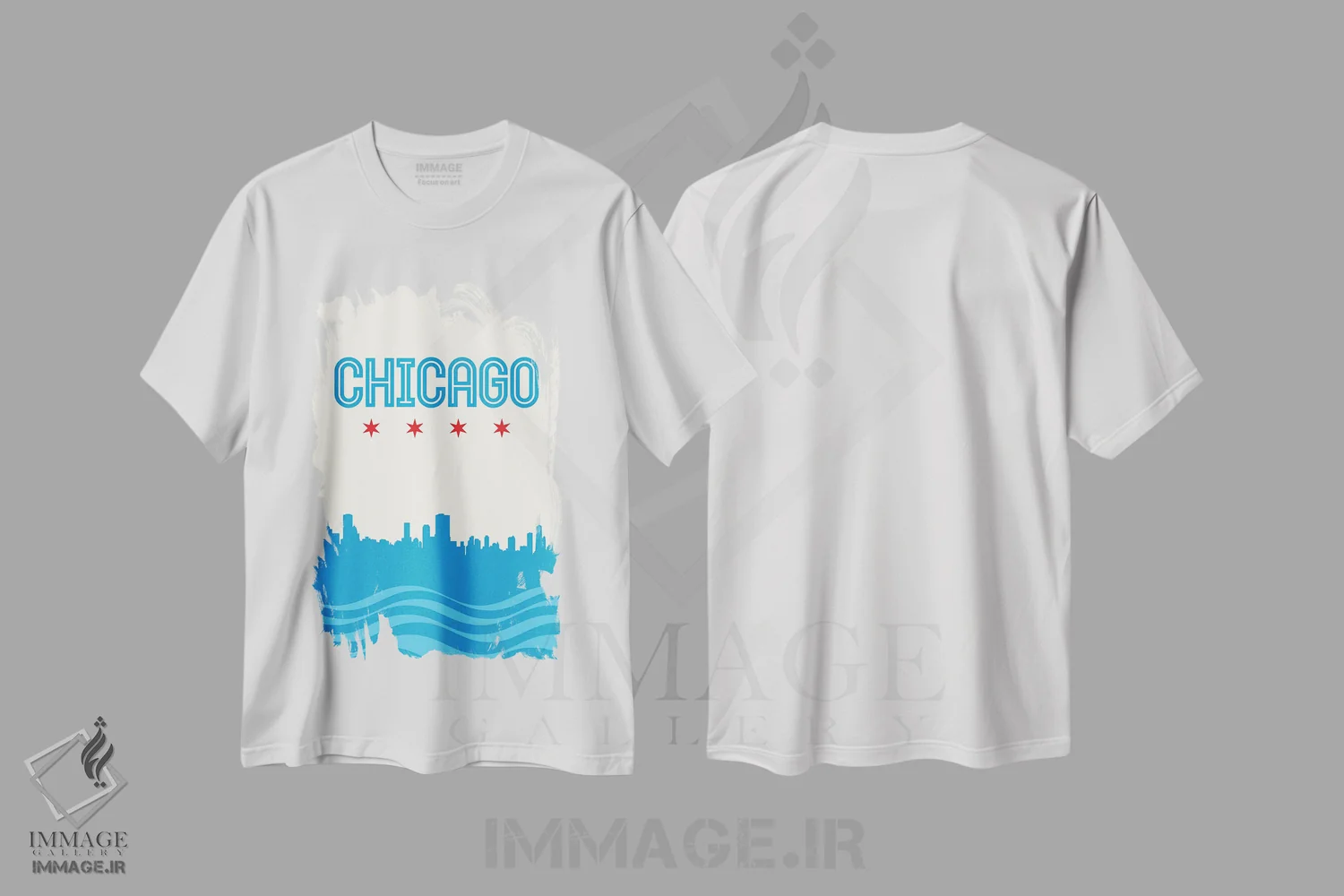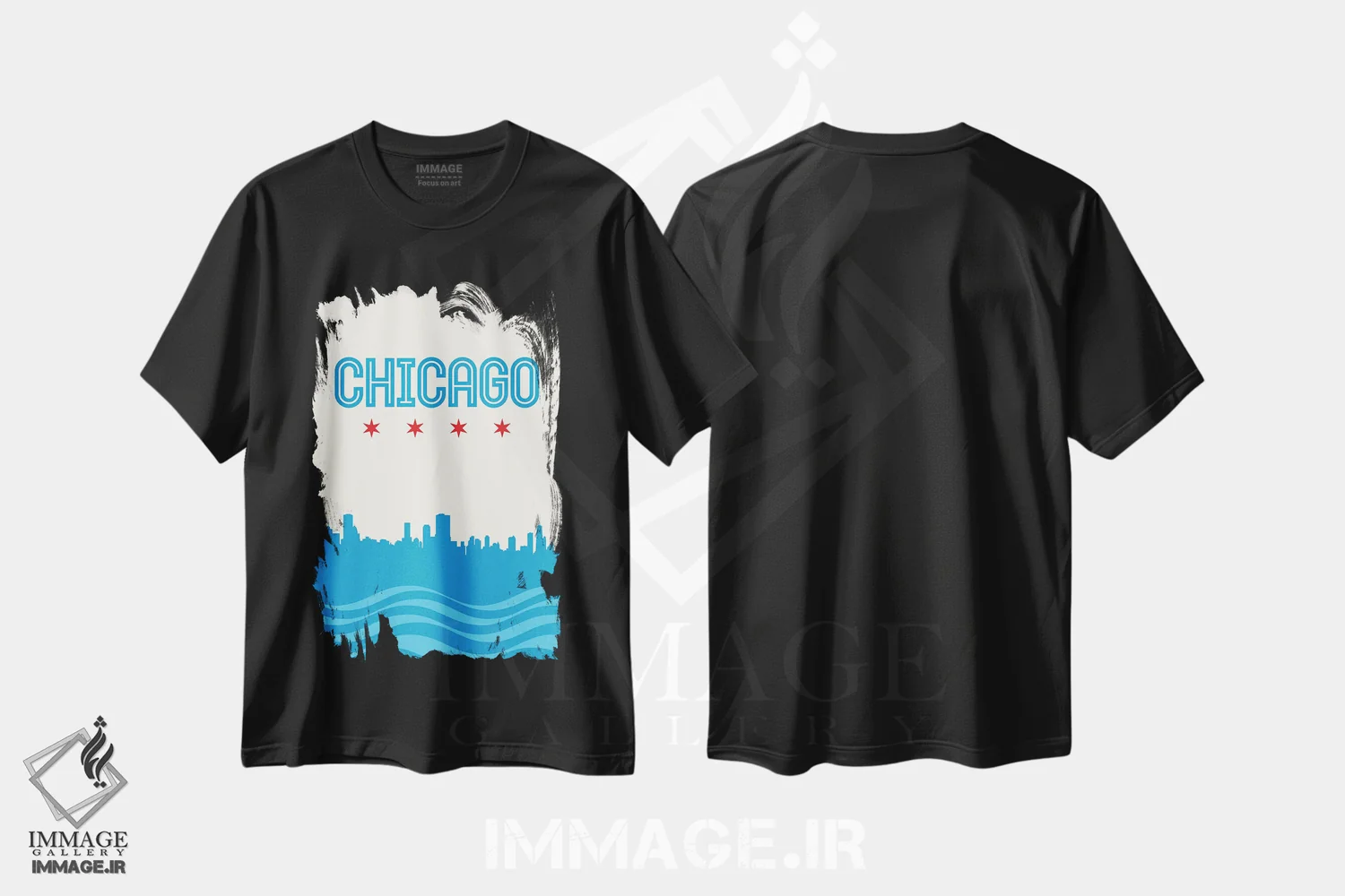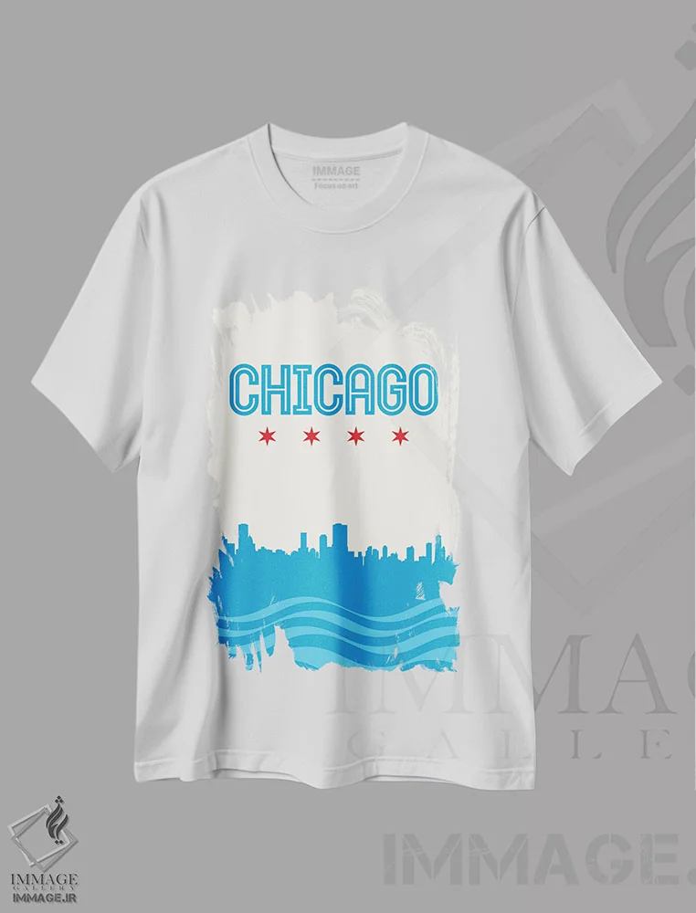 تی شرت «خط افق شیکاگو و پرچم»؛ ترکیب نماد شهری و مد مدرن