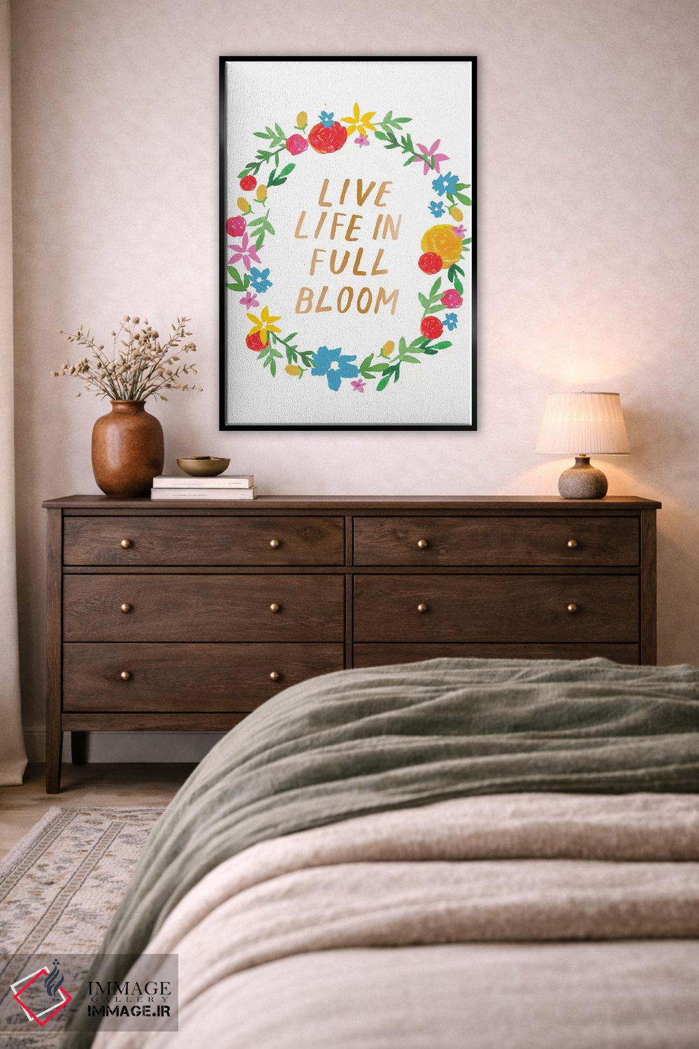 بوم گالری ایماژ طوری طراحی شده که اثر روی دیوار «پرداختشده» و حرفهای دیده شود—نه پرزرقوبرقِ بیپایه؛ بلکه دقیق و خوشپرداخت. بافت ظریف کنواس باعث میشود حس اثر هنری را در نگاه نزدیک نگه میدارد. کنترل تونها کمک میکند تعادل بهتری بین نور و رنگ ایجاد میکند بدون اغراق؛ فقط دقیقتر. حاصل کار، یک تابلو خوشنشین است که هم از دور اثرگذار است و هم از نزدیک خوشخوان؛ و اگر بخواهید، میتوان چیدمان را برای گالریوال هم پیشنهاد داد. همراهِ چوب و متریالهای طبیعی، بافت کنواس دلنشینتر دیده میشود.