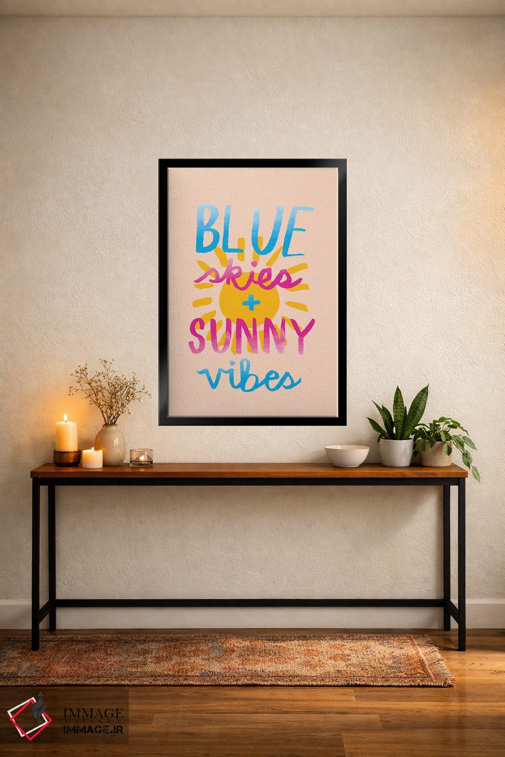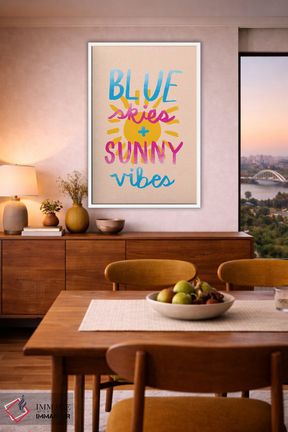 براساس پالت ترکیبی اثر، قاب بلوط روشن (چوبی) پیشنهاد اول است و استخوانی ملایم مکمل. برای سفارشهای پروژهای با ابعاد و قابهای اختصاصی با ایماژ در تماس باشید.