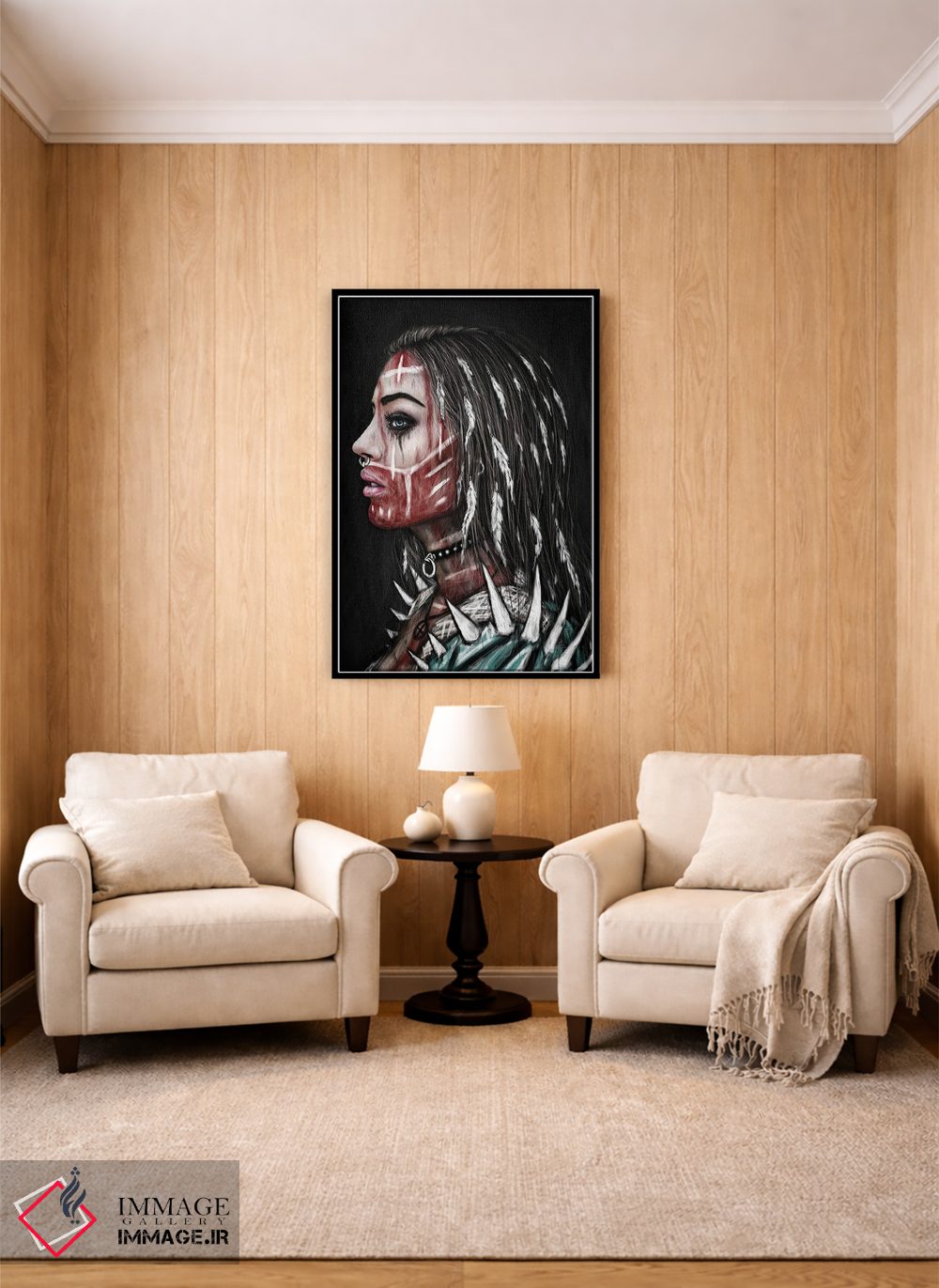 براساس پالت گرم اثر، قاب تیک گرم (چوبی) پیشنهاد اول است و مشکی مات (فریم متوسط) مکمل. برای سفارشهای پروژهای با ابعاد و قابهای اختصاصی با ایماژ در تماس باشید.