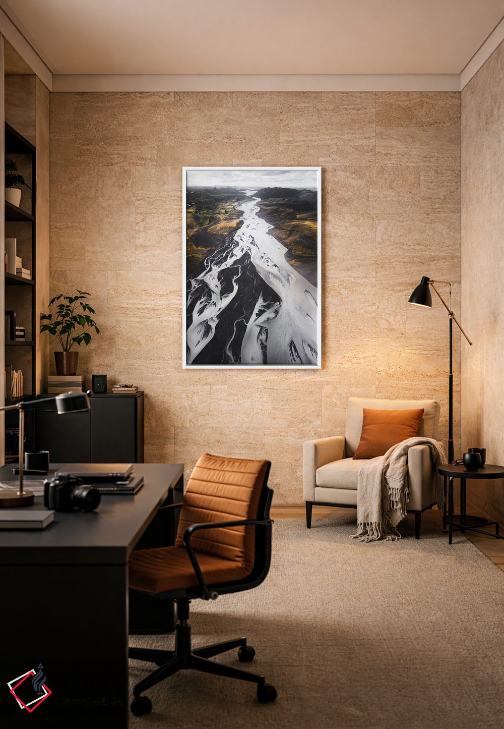 این تابلو با عنوان «رودخانهٔ بزرگ» اثرِ «جو شاتر» اتاق را جمعوجورتر و مرتبتر نشان میدهد؛ برای دکورهای کلاسیک با چوب و پارچه پیشنهاد میشود. این تابلو میتواند شروعِ خوبی برای یک دیوار گالری باشد.