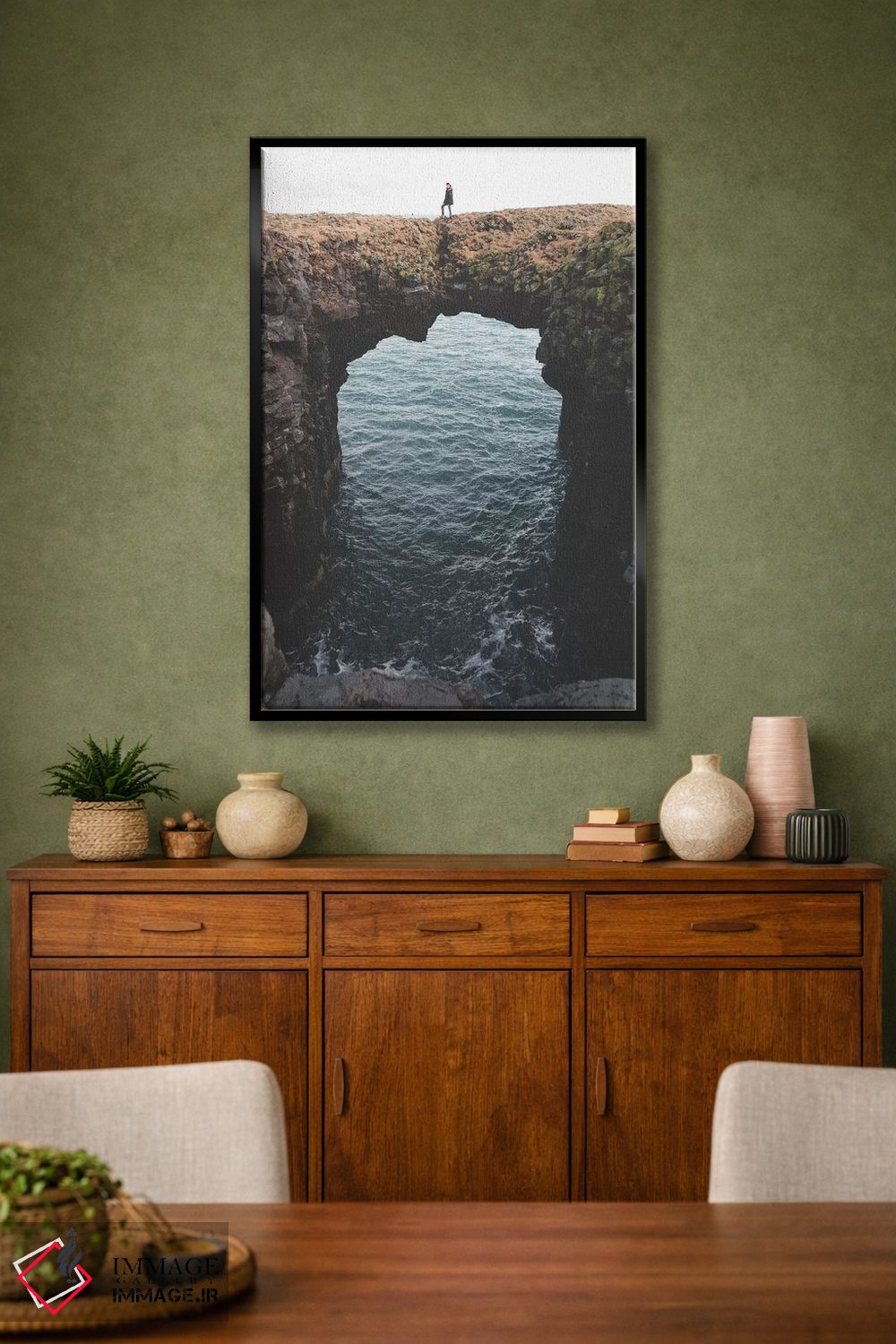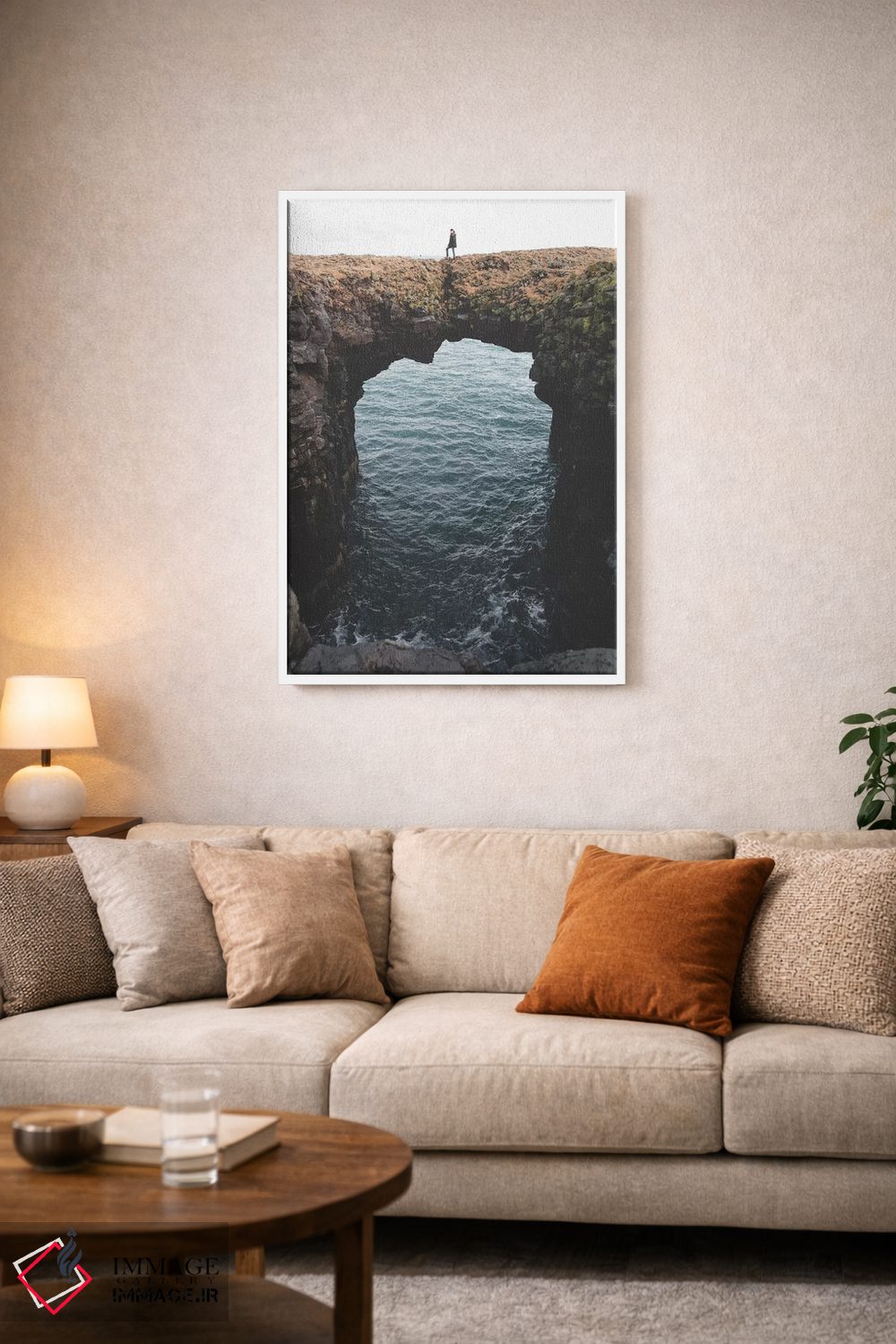براساس پالت گرم اثر، قاب بلوط روشن (چوبی) پیشنهاد اول است و استخوانی ملایم مکمل. برای سفارشهای پروژهای با ابعاد و قابهای اختصاصی با ایماژ در تماس باشید.
