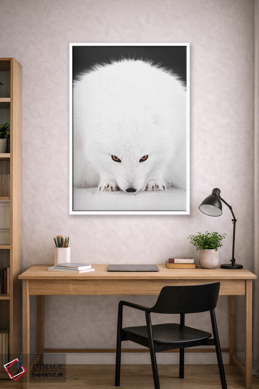 این اثر با عنوان «روباه سفید ۱» اثرِ «جو شاتر» فضا را صمیمیتر و دعوتکنندهتر نشان میدهد؛ برای اتاق بازی یا گوشهٔ مطالعه انتخابی خوشسلیقه است. به دیوار، قصه میدهد—اما قصهای آرام و شیک.