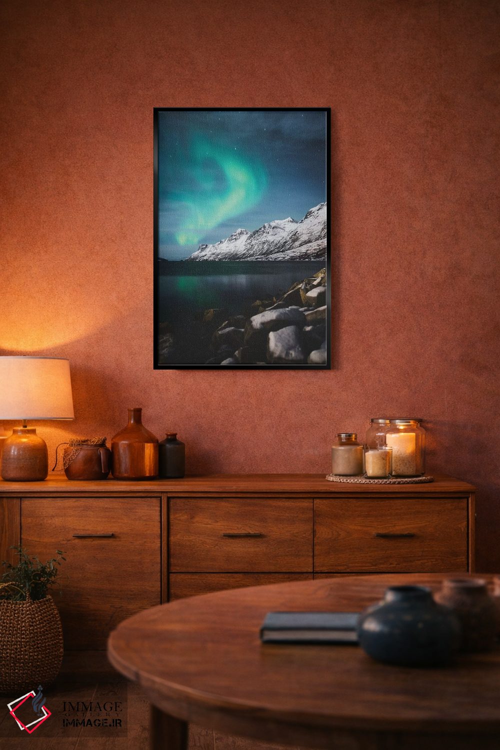 «شفق قطبی زمستانی» اثرِ «جو شاتر» یک قاب دکوراتیوِ گرم و دلنشین است؛ این اثر در اجرای پرداختِ هنری، فضا را نرمتر و صمیمیتر نشان میدهد.