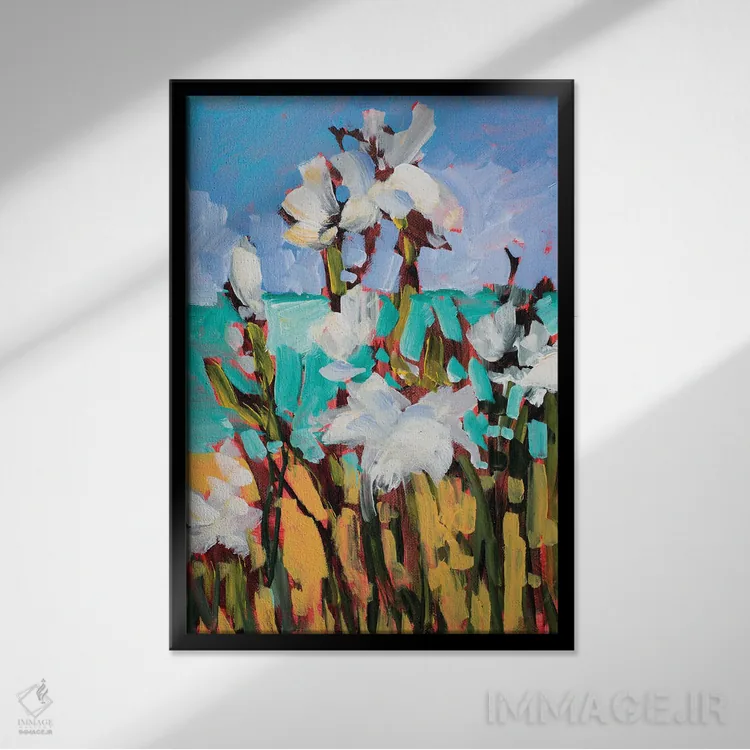 براساس پالت ترکیبی اثر، قاب تیک گرم (چوبی) پیشنهاد اول است و مشکی مات (فریم متوسط) مکمل. برای سفارشهای پروژهای با ابعاد و قابهای اختصاصی با ایماژ در تماس باشید.