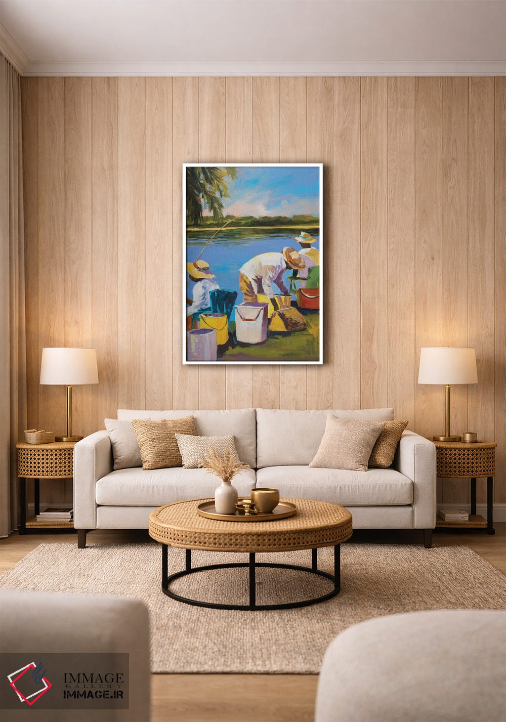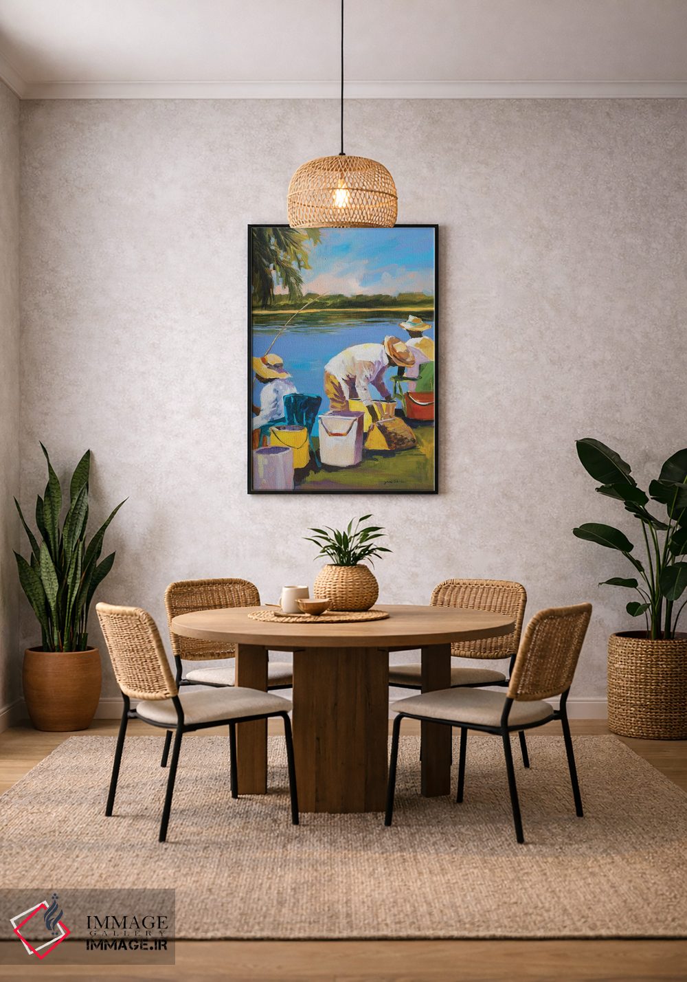 «ماهیگیری I» اثرِ «جین اسلیوکا» با حالوهوای این اثر و اجرای هنری، به فضا لطافت میدهد و برای کنار چوب روشن یا دیوارهای خنثی عالی مینشیند.