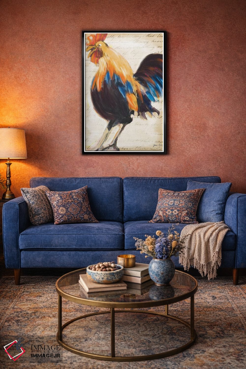براساس پالت ترکیبی اثر، قاب تیک گرم (چوبی) پیشنهاد اول است و مشکی مات (فریم متوسط) مکمل. برای سفارشهای پروژهای با ابعاد و قابهای اختصاصی با ایماژ در تماس باشید.