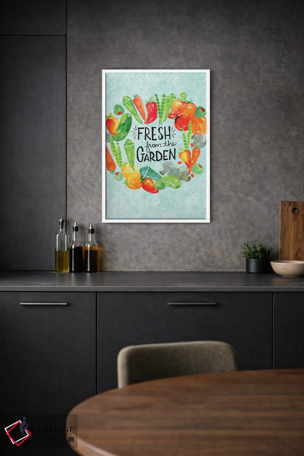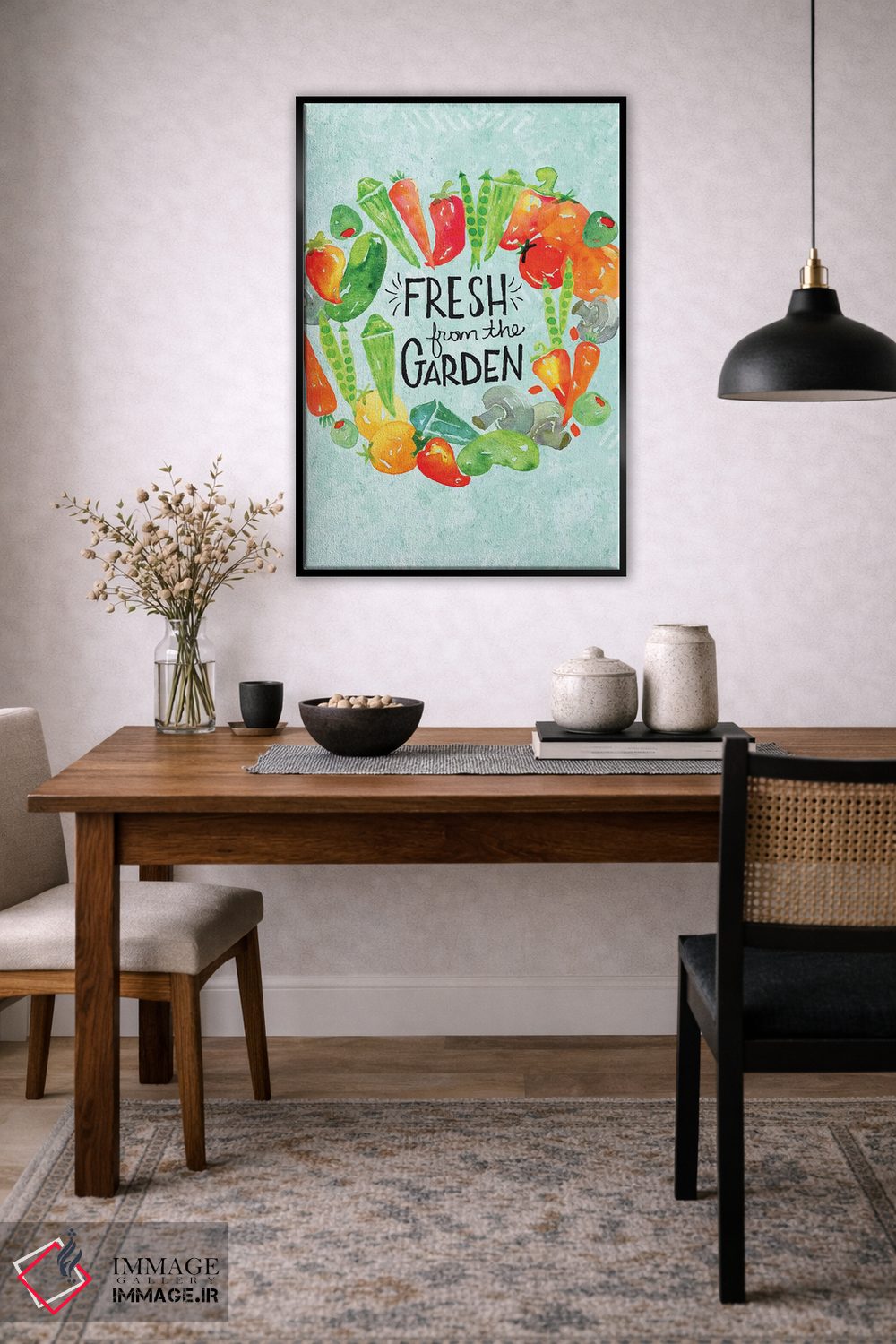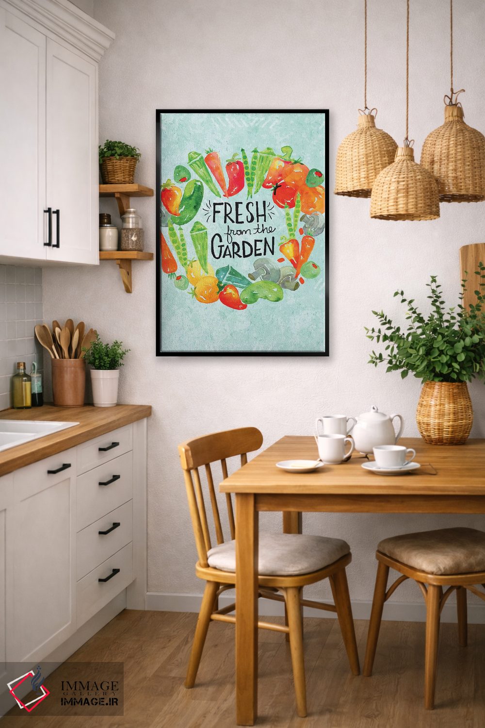 براساس پالت ترکیبی اثر، قاب تیک گرم (چوبی) پیشنهاد اول است و مشکی مات (فریم متوسط) مکمل.
