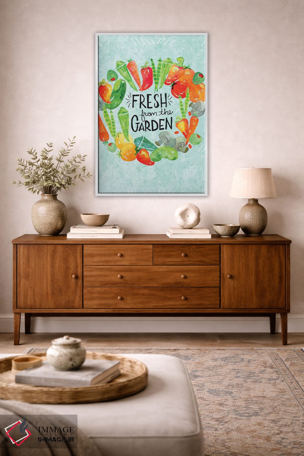 براساس پالت ترکیبی اثر، قاب تیک گرم (چوبی) پیشنهاد اول است و مشکی مات (فریم متوسط) مکمل. برای سفارشهای پروژهای با ابعاد و قابهای اختصاصی با ایماژ در تماس باشید.