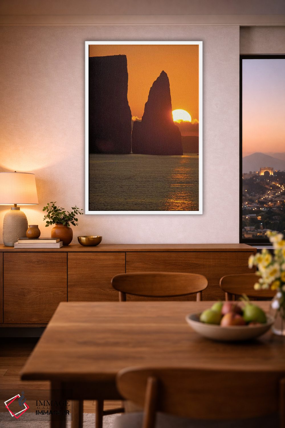 برای فضایی که میخواهید مرتبتر و حرفهایتر دیده شود، «San Cristobal Island، Galapagos Islands، Ecuador، کیکر راک (لئون دورمیدو) در غروب آفتاب، جزیره سن کریستوبال، جزایر گالاپاگوس، اکوادور» اثرِ «جک استاین گروو» به فضا، روایت ملایم و قابل لمس میدهد؛ برای فضاهایی با نور طبیعی پیشنهاد میشود. با مبلمان خنثی، تضاد دلنشینی میسازد.