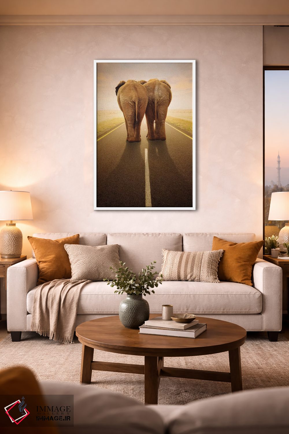 بوم گالری ایماژ طوری طراحی شده که اثر روی دیوار «پرداختشده» و حرفهای دیده شود—نه پرزرقوبرقِ بیپایه؛ بلکه دقیق و خوشپرداخت. بافت ظریف کنواس باعث میشود حس اثر هنری را در نگاه نزدیک نگه میدارد و برای فضاهای رسمیتر هم انتخاب مطمئنی است. با چاپ جیکلی (Giclée)، گذارهای رنگی را نرمتر میکند و نتیجه را یکدستتر میکند. این کیفیت برای دکورهای دقیقتر و پروژههای حرفهای خودش را بهتر نشان میدهد؛ در کنار نورپردازی درست، جلوهی گالریوار بیشتری حس میشود. در کنار چوب و متریالهای طبیعی، بافت کنواس دلنشینتر دیده میشود.