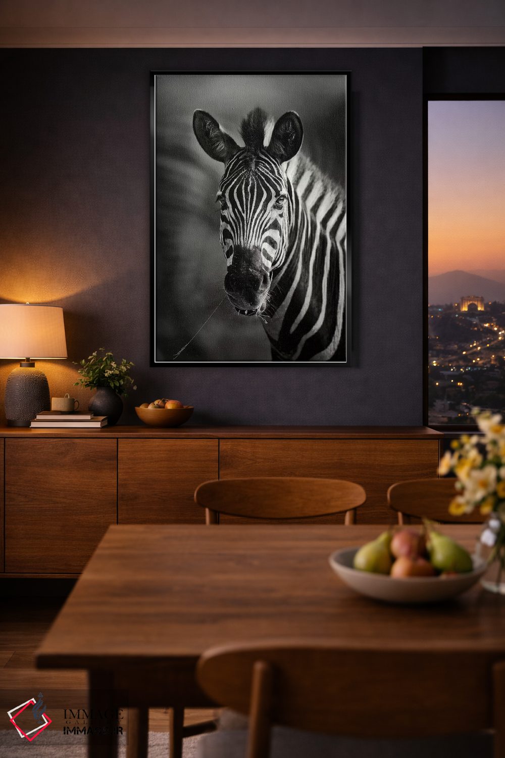 این اثر با عنوان «نمای نزدیک پرتره گورخر» اثرِ «یوهان سوانپوئل» بافت و جزئیات را طوری نشان میدهد که نگاه میماند؛ برای دیوار کنار میز کار انتخابی خوشسلیقه است. در کنار گیاهان و نور طبیعی، جذابتر هم میشود.