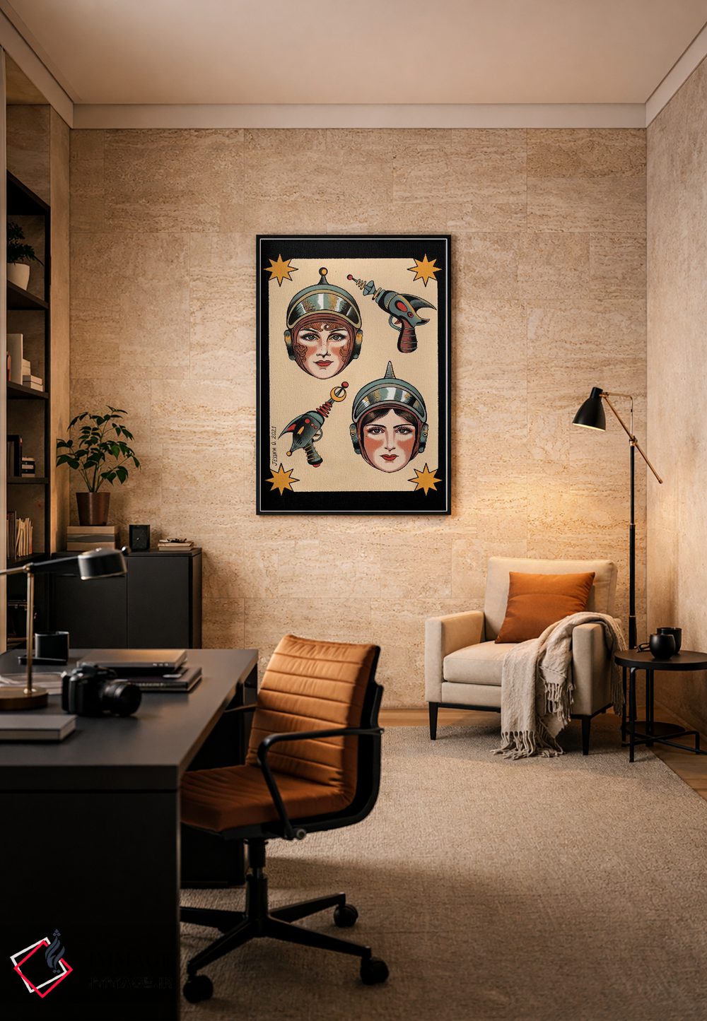 این اثرِ «جسیکا اُ.» با حس آلترناتیو، به دیوار شخصیت میدهد؛ موضوعِ این اثر هم برای استودیو و فضای کار خلاقانه مناسب است.