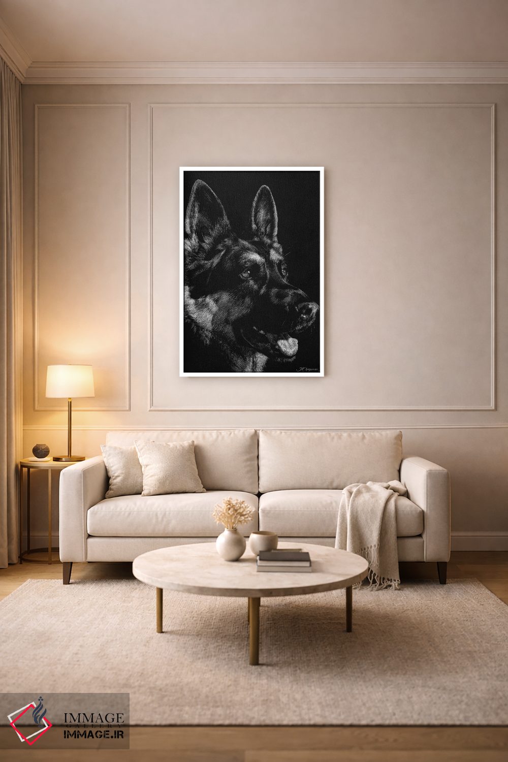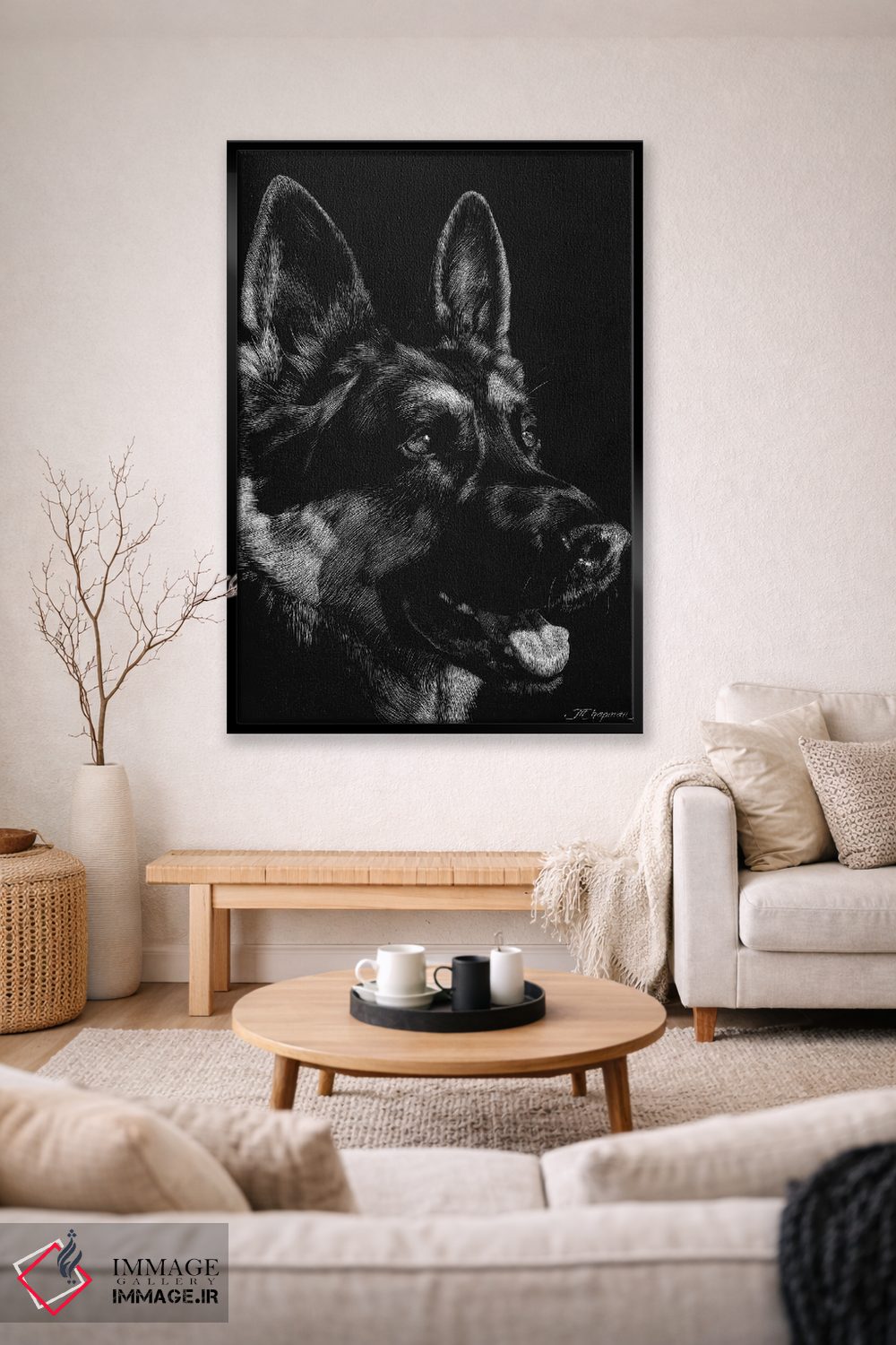 براساس پالت خنثی اثر، قاب مشکی مات (فریم باریک) پیشنهاد اول است و سفید مات (فریم باریک) مکمل. برای سفارشهای پروژهای با ابعاد و قابهای اختصاصی با ایماژ در تماس باشید.